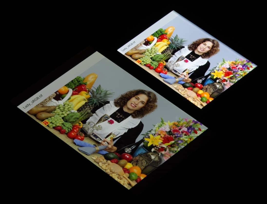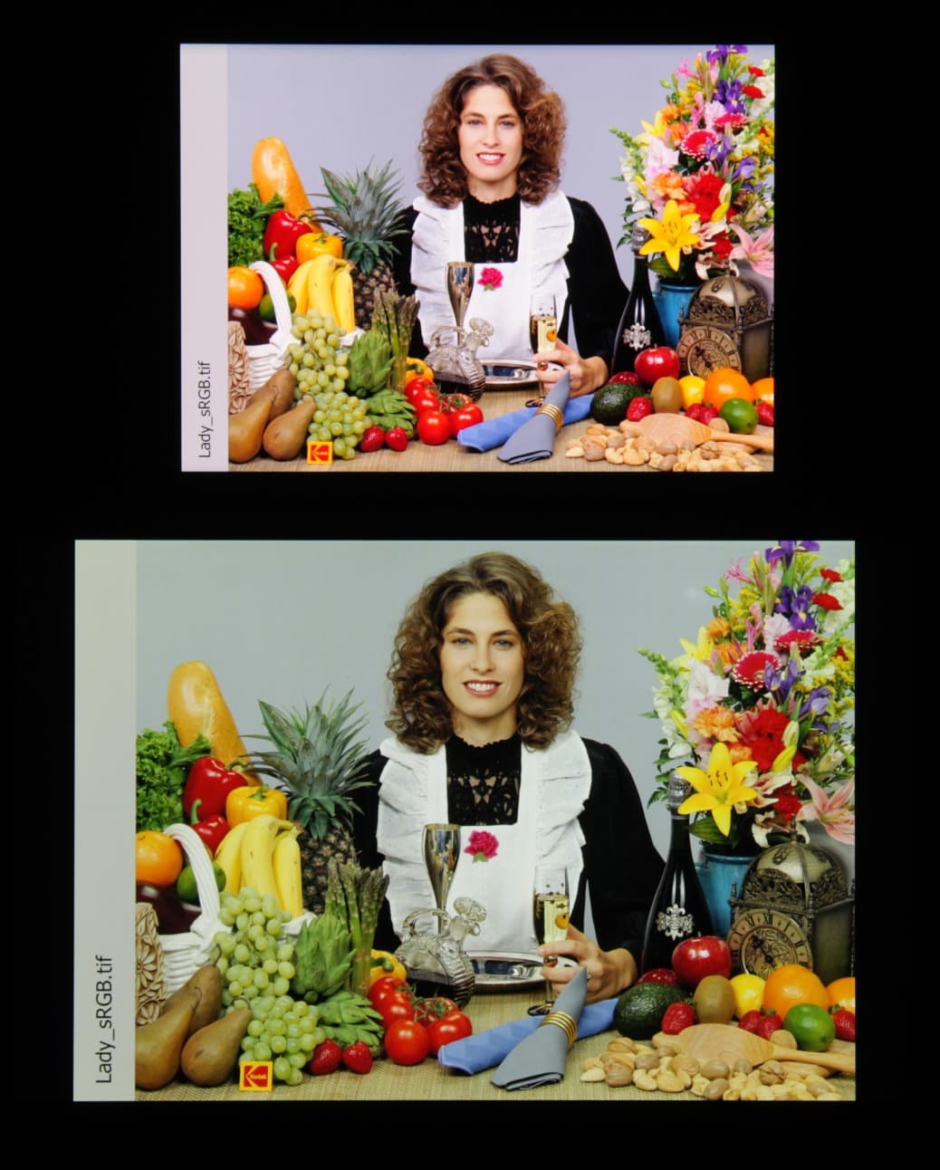 Отметим, что на экранах с широким цветовым охватом (без соответствующей коррекции) цвета́ обычных изображений, оптимизированных для устройств sRGB, выглядят неестественно насыщенными. Отсюда и рекомендация: в большинстве случаев смотреть кино, фотографии и все естественное лучше при выборе профиля Естественные цвета, и только если фотография или видеоматериал сделаны с охватом DCI, принятым в цифровом кинематографе, имеет смысл переключить профиль на Насыщенные цвета.