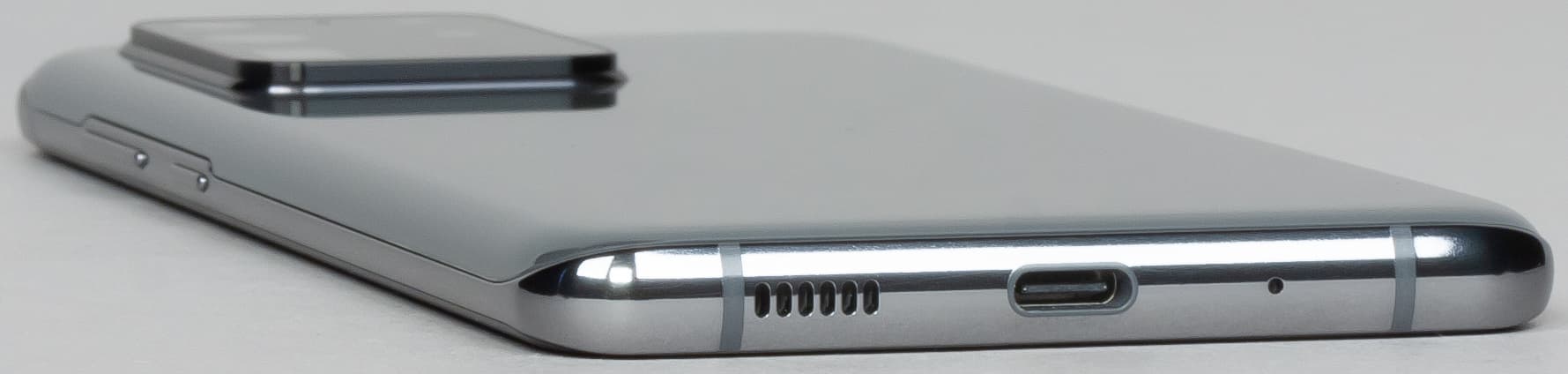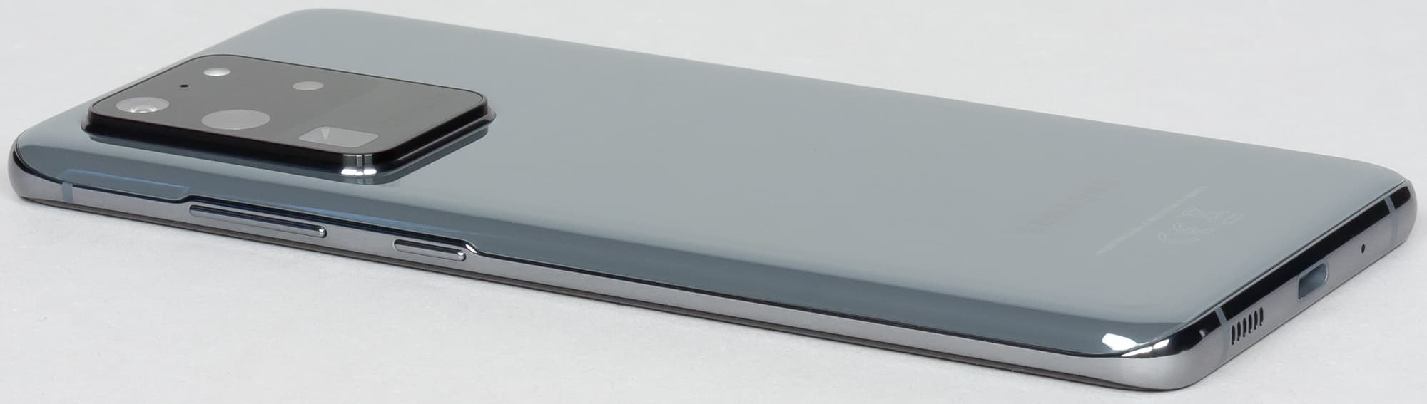 Экран у Samsung Galaxy S20 Ultra 5G заметно темнее (яркость по фотографиям 102 против 110 у Nexus 7) и не имеет выраженного оттенка. Двоение отраженных объектов в экране Samsung Galaxy S20 Ultra 5G очень слабое, это свидетельствует о том, что между слоями экрана нет воздушного промежутка. За счет меньшего числа границ (типа стекло/воздух) с сильно различающимися коэффициентами преломления экраны без воздушного промежутка лучше смотрятся в условиях интенсивной внешней засветки, но вот их ремонт в случае потрескавшегося внешнего стекла обходится гораздо дороже, так как менять приходится экран целиком. На внешней поверхности экрана Samsung Galaxy S20 Ultra 5G есть специальное олеофобное (жироотталкивающее) покрытие (очень эффективное, гораздо лучше, чем у Nexus 7), поэтому следы от пальцев удаляются существенно легче, а появляются с меньшей скоростью, чем в случае обычного стекла.