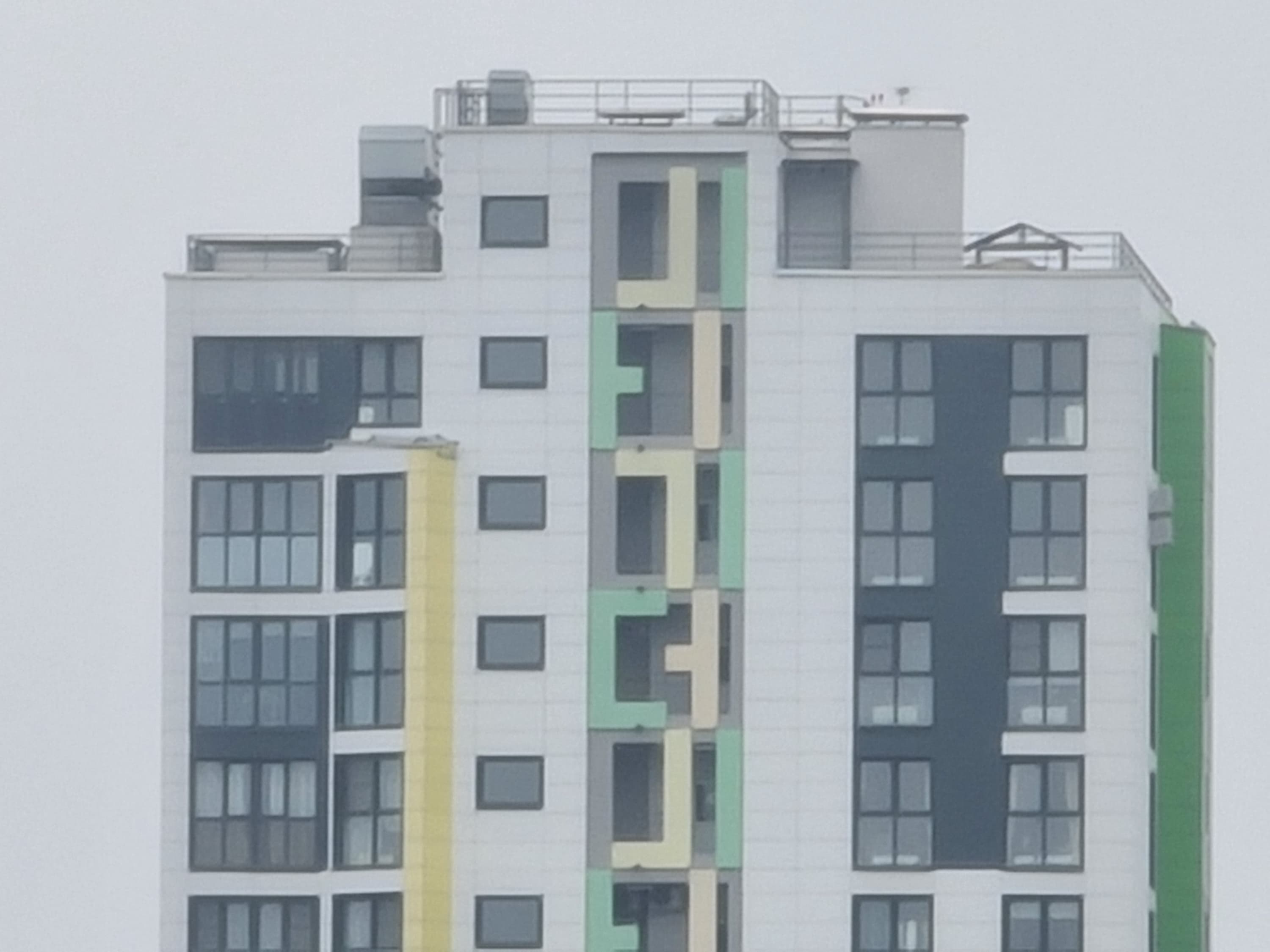 Тогда главный вопрос: если все это настолько хорошо видно и понятно, то зачем производители так делают, почему не ограничиваются ресайзом? Дело, как ни банально, в том, что производитель не стремится к довольно абстрактной цели получить фотографии с высокой детализацией. Перед ним стоит задача получить фотографии, которые смотрятся лучше. А где их смотрят? В большинстве случаев — на экране самого смартфона. И даже если на мониторе/телевизоре, то в большинстве случаев — в уменьшенном размере. И в этих случаях именно «интеллектуально улучшенный» снимок выглядит лучше: сравните, например, насколько отчетливее видны ветви деревьев на фоне неба на общем плане и насколько сильнее выражена пятнистость облицовки здания при рассматривании в полный размер. (Для упрощения мы прикладываем два снимка: исходно 12 Мп и 108→12 Мп; второй получен из 108 Мп обычным ресайзом в Photoshop с небольшим осветлением.) Ну да, это «нечестные» детали — но пользователю-то нужна «красота», а не «честность». Впрочем, это подход конкретно Samsung, и он экстремальный в том смысле, что так сильно снимки никто больше не модифицирует. При таком походе страдают самые тонкие линии, и если рассматривать в полный размер, например, мелкие надписи, то они почти всегда выглядят после подобной обработки хуже. Что же делать в таких ситуациях? Как оценивать и сравнивать снимки с разных смартфонов? Мы продолжим поступать так же, как поступали раньше: будем честно информировать вас о том, есть ли выигрыш в детализации у «более мегапиксельных» фотографий и имеет ли смысл, на наш взгляд, снимать в полном разрешении сенсора. А вы имеете полную возможность сравнить снимки самостоятельно и самостоятельно же прийти к своим собственным выводам о том, что́ вам нравится больше.