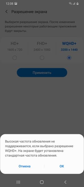В настройках экрана можно включить режим с повышенной до 120 Гц частотой обновления. В этом режиме нам как минимум обещают увеличение плавности прокрутки, но родное разрешение при этом уже не поддерживается.