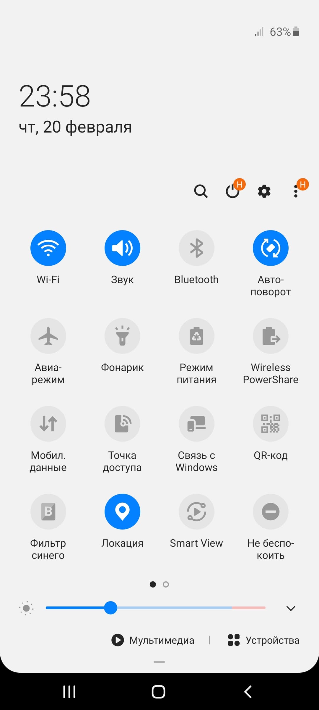 В качестве программной платформы используется ОС Android 10-й версии с оболочкой One UI 2.0. Оболочка совсем свежая, мы уже встречали ее, например, в Samsung Galaxy S10 Lite. Есть поддержка жестов, работа одной рукой, многозадачность. Можно настраивать вручную весьма богатую функциональность Always On Display, менять частоту обновления экрана и его чувствительность к прикосновениям, запускать игры в игровом режиме, а также углубиться в куда более тонкие настройки, вроде уменьшения интенсивности анимаций. Не всем такое богатство самостоятельной настройки нужно, но здесь можно найти практически все. Имеется даже выдвижная панель Edge, несмотря на то, что экран плоский. Есть пресловутая темная тема, изменяющая оформление всей системы вплоть до шторки уведомлений. Также в шторке уведомлений можно менять форму значков. Возможности самостоятельной настройки и оформления интерфейса в последней версии уделили еще больше внимания. При получении уведомлений по сильно загнутым краям дисплея пробегают две светящиеся полоски, цвет которых можно выбирать вручную.