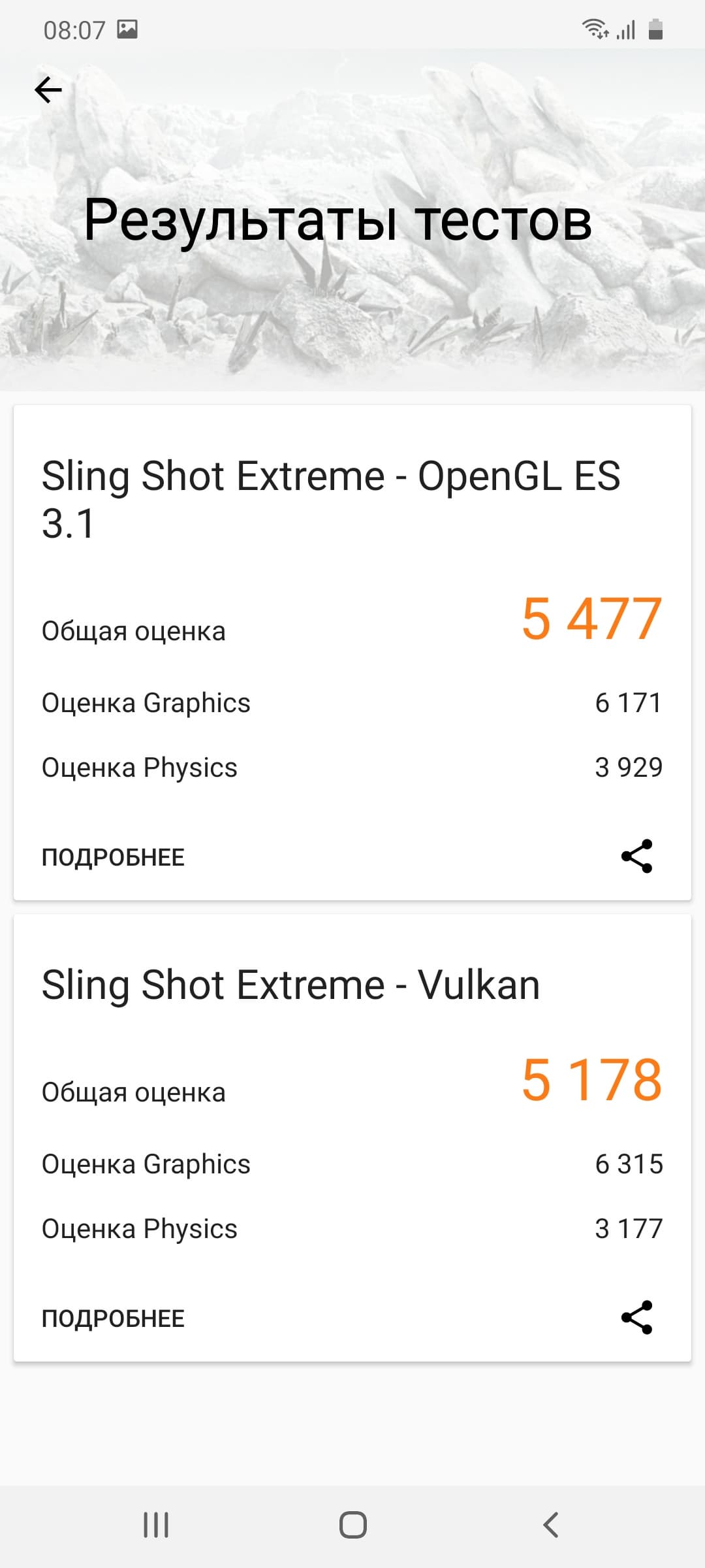 | 3DMark Sling Shot Ex Vulkan (больше — лучше) | 5178 | 4830 | 4903 | 4756 | 2763 |