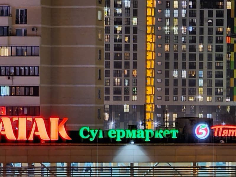 В общем-то, мы уже выразили свое отношение к «штатным» снимкам с основной камеры: используемая Samsung обработка существенно снижает детализацию относительно возможной, нам это скорее не нравится, но мы признаём, что определенные кадры (и сюжеты) при этом смотрятся лучше. В данном случае однозначно стоит снимать в 108 Мп, если вы хотите сохранить на фотографиях как можно больше деталей, но при этом надо быть готовым к тому, что снимки займут раз этак в шесть больше места и будут медленнее листаться. В целом же фотографии получаются как минимум хорошие и днем, и ночью, без серьезных завалов резкости к краям кадра, с адекватной экспозицией и вроде бы адекватными цветами (очень хочется хотя бы весны, чтобы увидеть эти цвета на улице вживую и тогда сказать что-то более определенное). Нам еще только предстоит познакомиться с новыми 108-мегапиксельными камерами в смартфонах других производителей, и лишь тогда мы сможем понять, какое место среди них занимают новые флагманы Samsung.