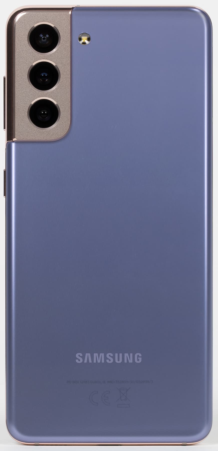 В заднем блоке у Samsung Galaxy S21 5G установлены три камеры: в отличие от флагмана, здесь нет двух телеобъективов с разным фокусным расстоянием, только обычная камера (широкоугольная), сверхширокоугольная и один номинальный «телевик». «Телевик», как и в прошлом поколении, является таковым лишь номинально: оптический зум он реализует всего 1,1×, но имея значительно более высокое разрешение, приспособлен решать задачу 3-кратного гибридного зумирования — помеси оптического и цифрового зума.