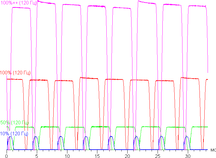 Действительно, в режиме 120 Гц плавность прокрутки повышается. Посмотрим, изменится ли при этом характер модуляции: