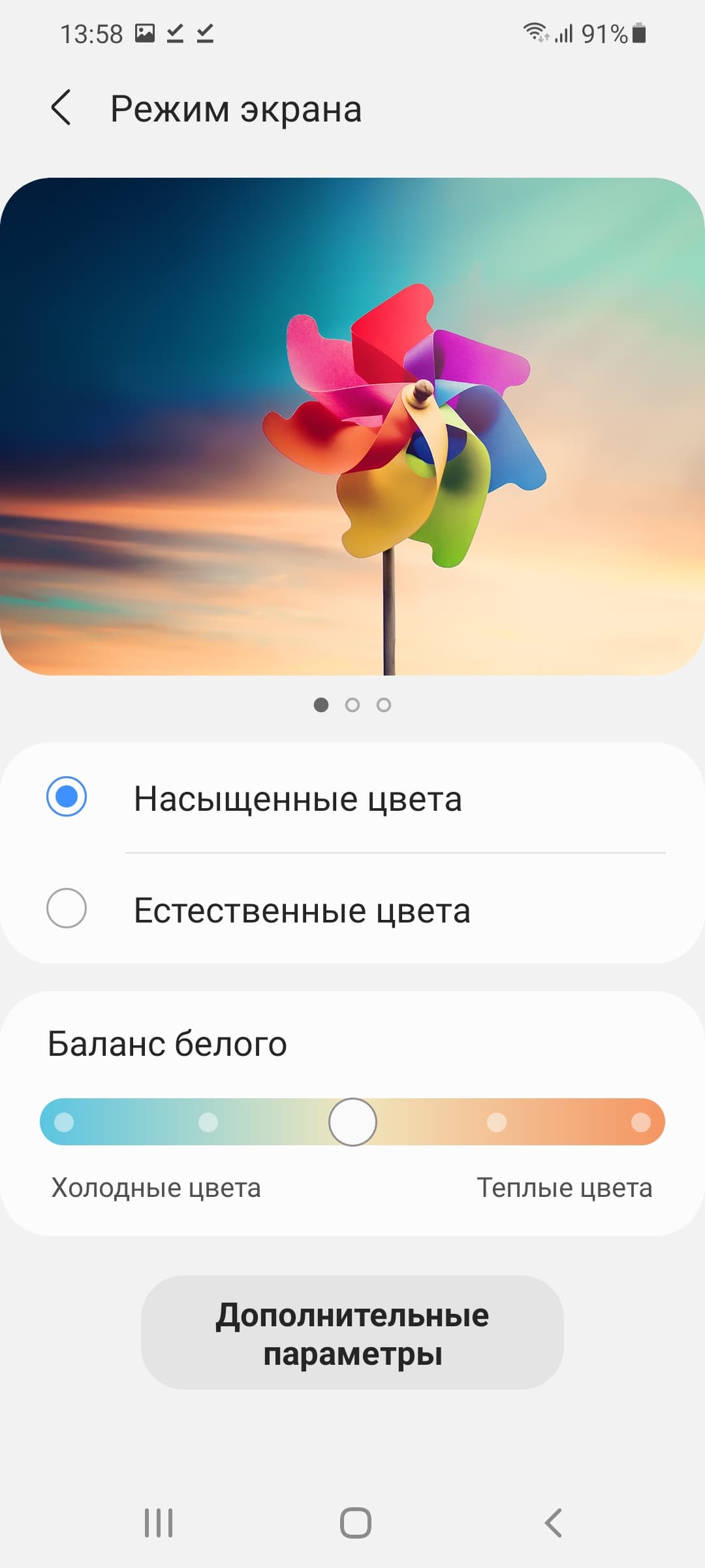 Фотография выше получена после выбора профиля Естественные цвета в настройках экрана, всего их два: