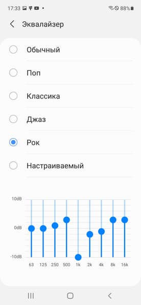 Встроенные стереодинамики звучат чисто, объемно и громко, с приятным на слух набором частот, включая низкие. Играть в игры или смотреть видео на смартфоне в ландшафтной ориентации — одно удовольствие. Поддерживается Dolby Atmos и девятиполосный эквалайзер с пресетами. Для проводных наушников не сохранили 3,5-миллиметровый аудиовыход, но зато для беспроводных наушников поддерживается Bluetooth-кодек aptX HD.