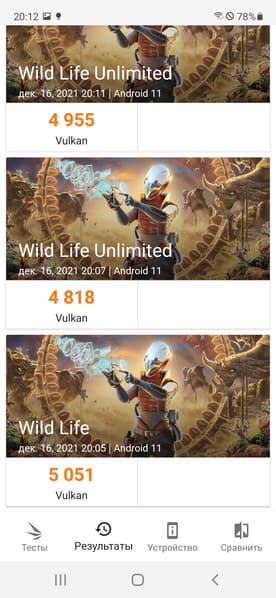 | 3DMark Wild Life Vulkan (больше — лучше) | 5051 | 4239 | 2504 | 3888 | |