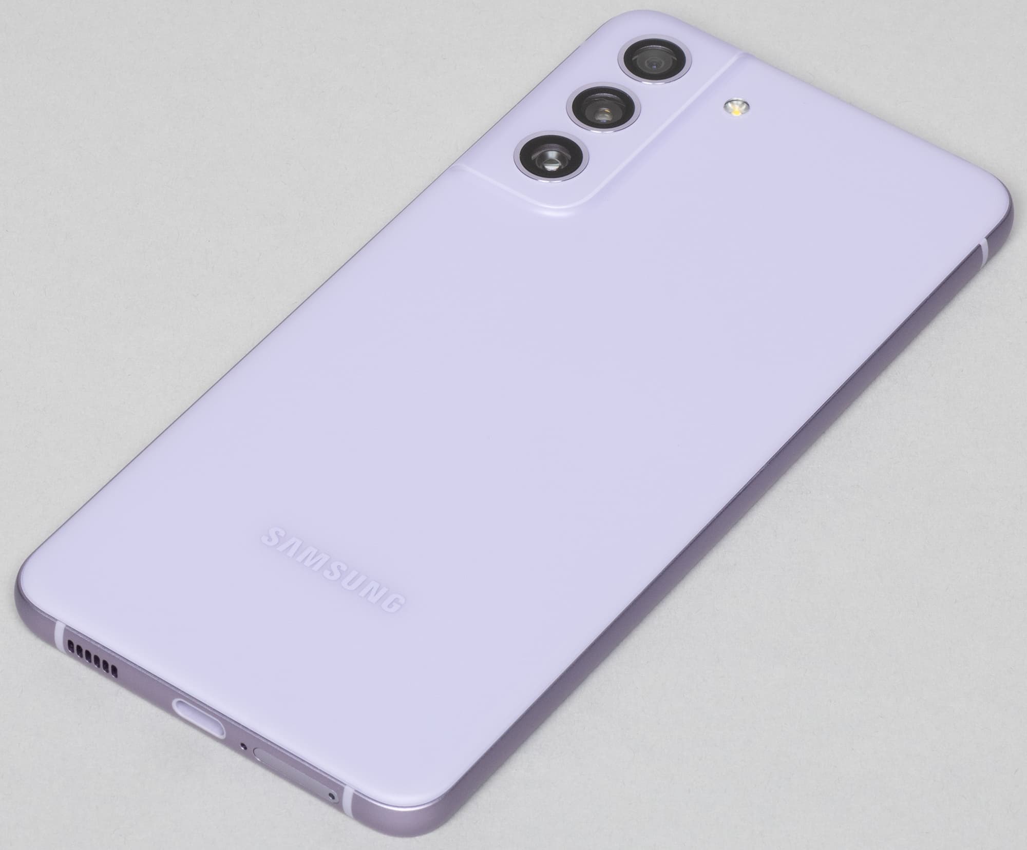 Смартфон Samsung Galaxy S21 FE похож на своего предшественника Galaxy S20 FE гораздо меньше, чем на представителей текущей линейки Galaxy S21. Здесь и более выраженная боковая рамка, не плоская, но все же гораздо более широкая, и такой же формы выступ, на котором расположены объективы камер.