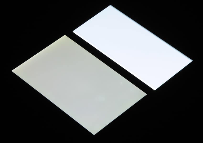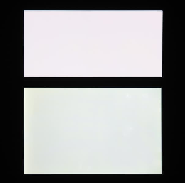Отметим хорошую равномерность яркости и цветового тона белого поля (за исключением едва видимого затемнения и изменения оттенка к загнутым краям).