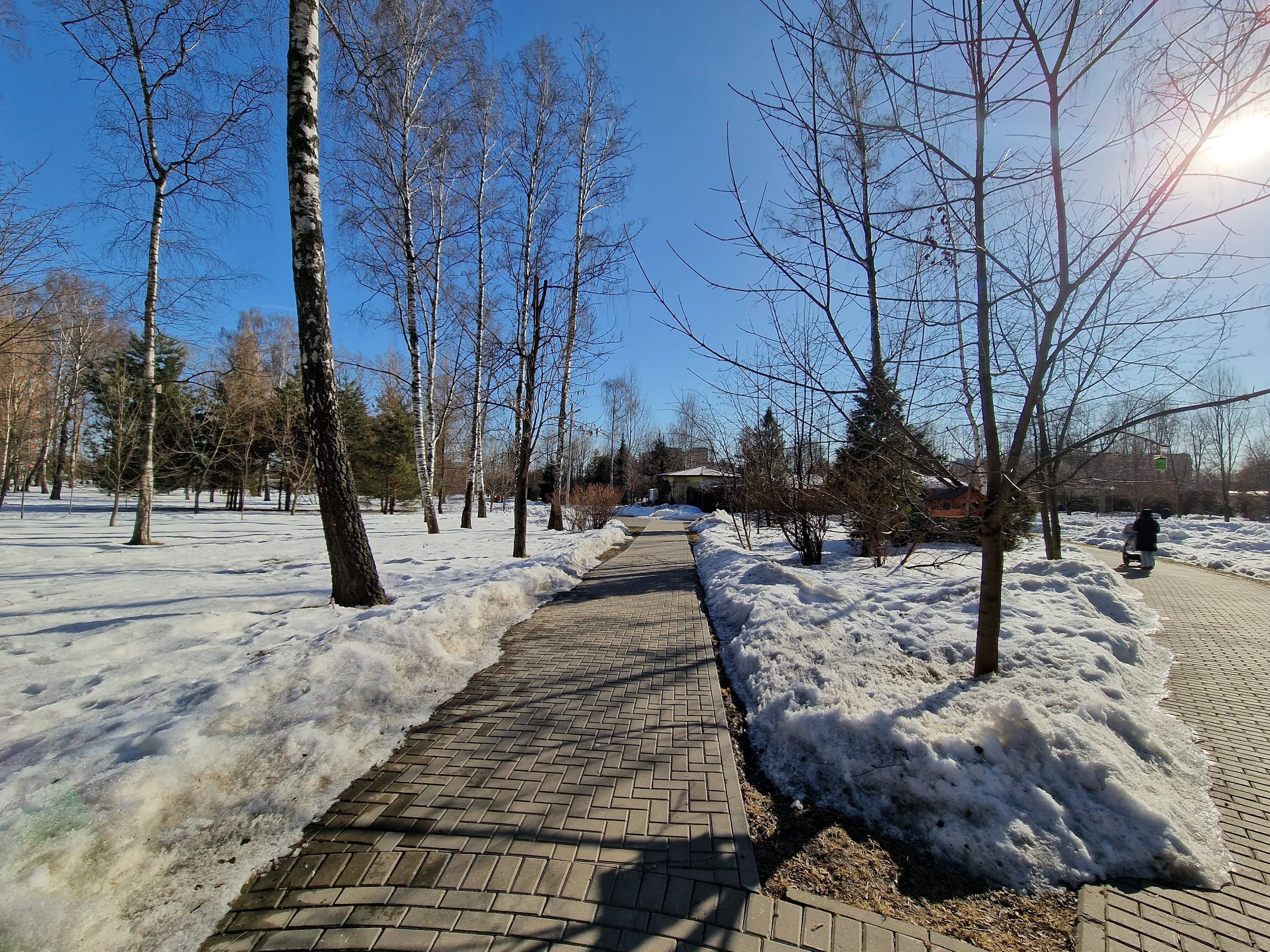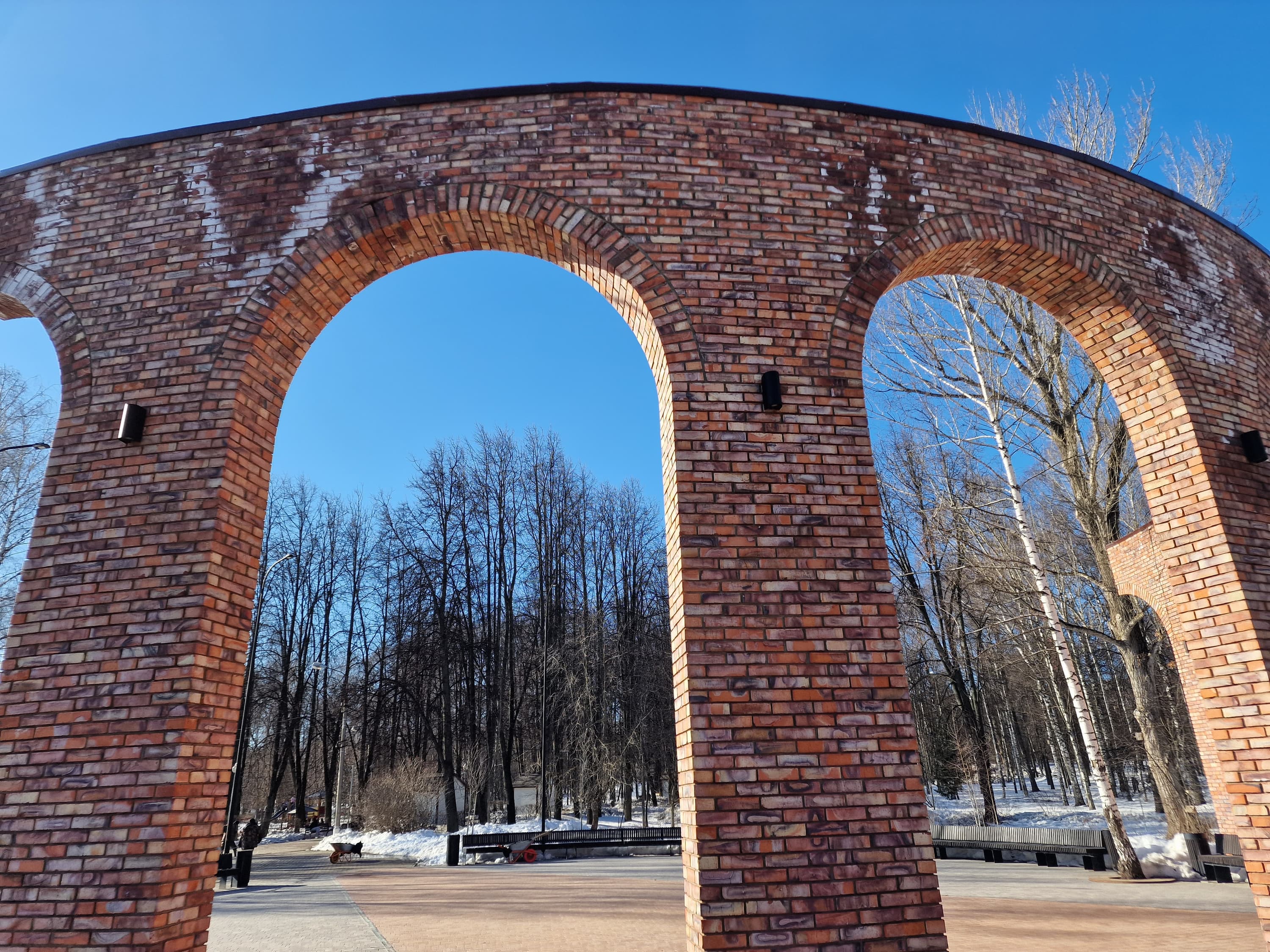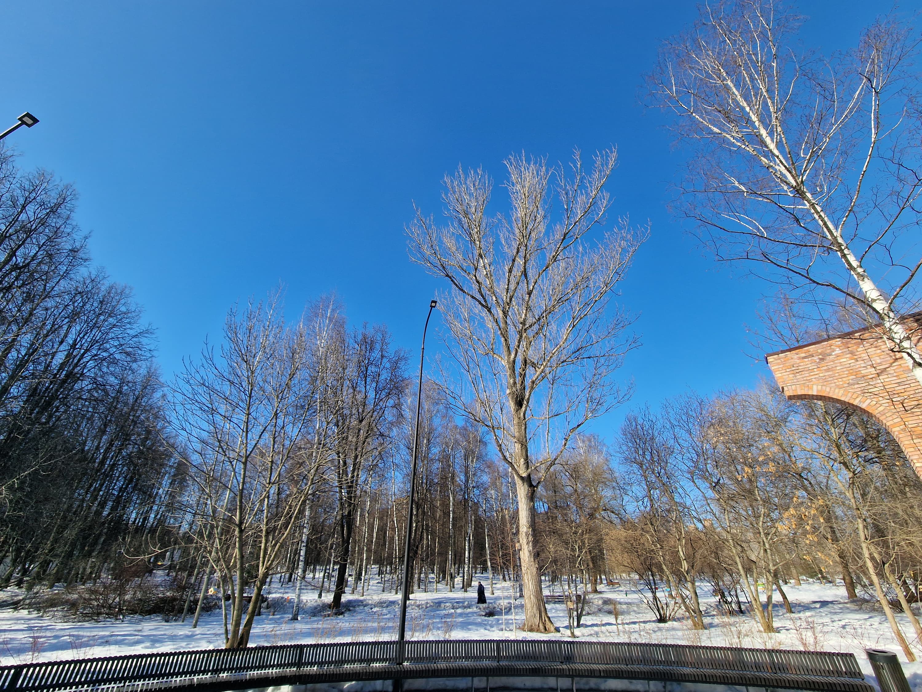 Широкоугольный модуль выдает менее контрастные снимки. Динамический диапазон его матрицы не позволяет так же качественно проэкспонировать света и тени, поэтому картинка выглядит местами пересвеченной и в целом плоской. К краям кадра появляются большие смазы и пятна нерезкости. Но в сравнении с большинством аналогов это вполне достойный уровень для широкоугольной мобильной оптики.