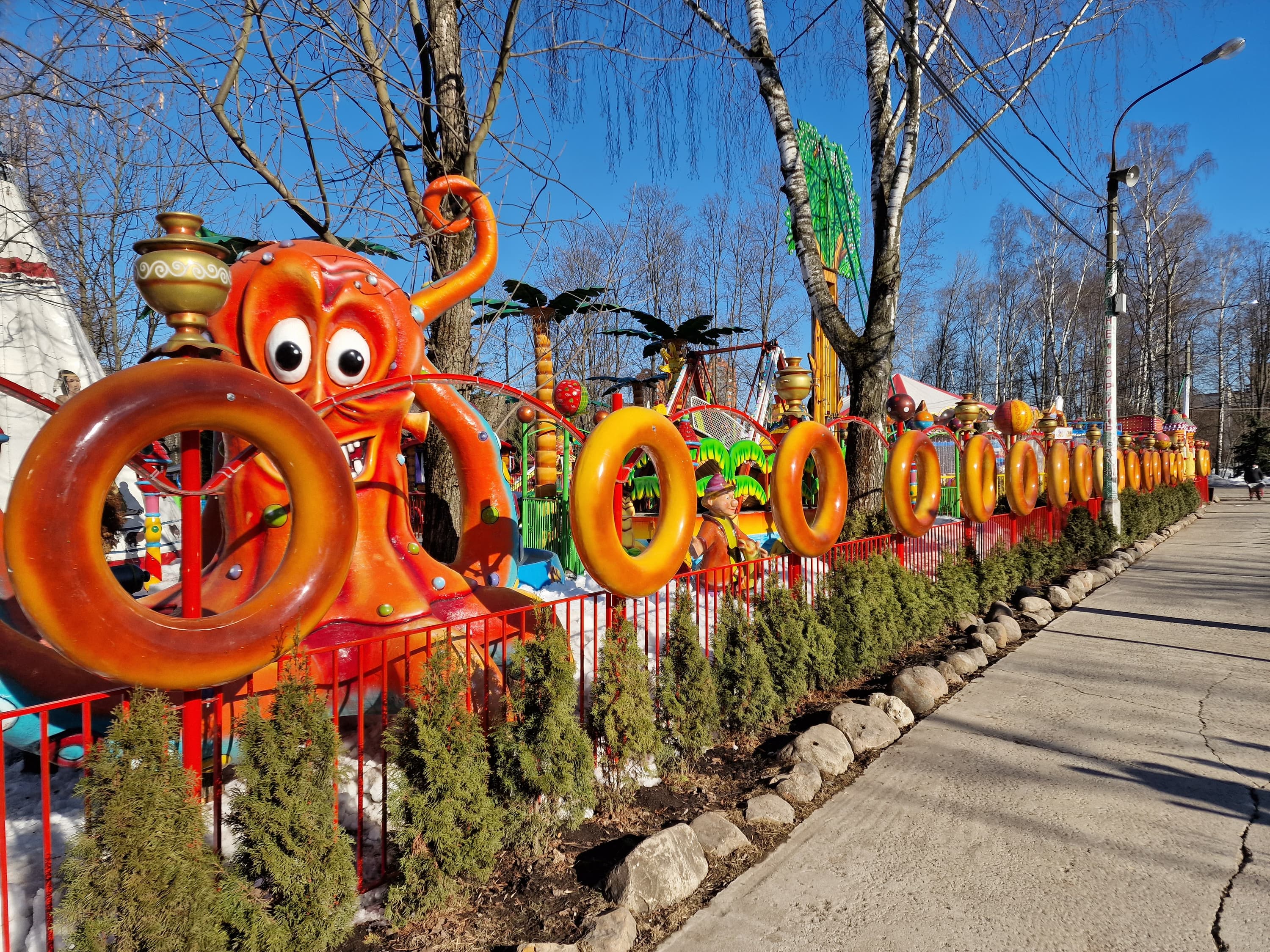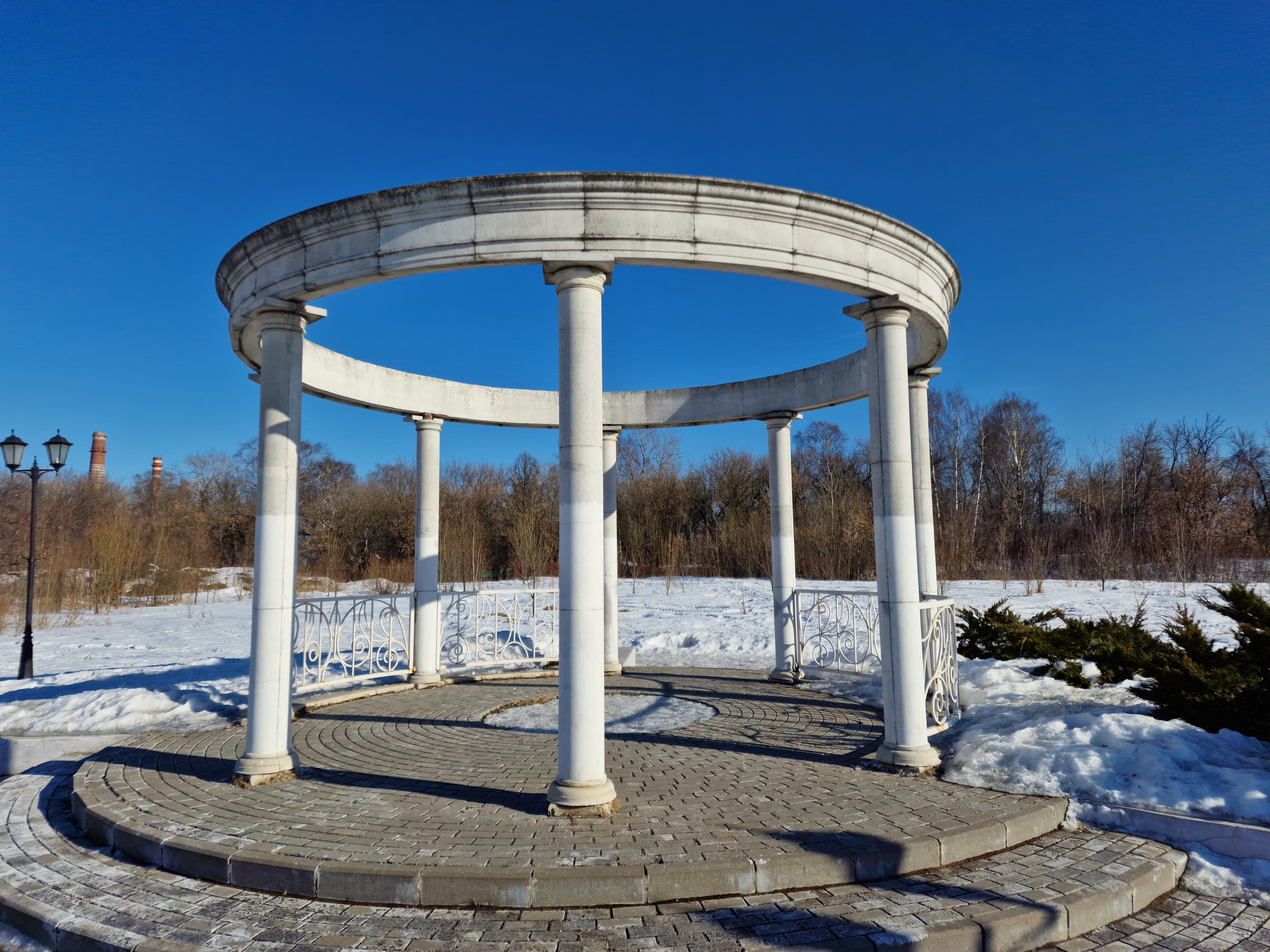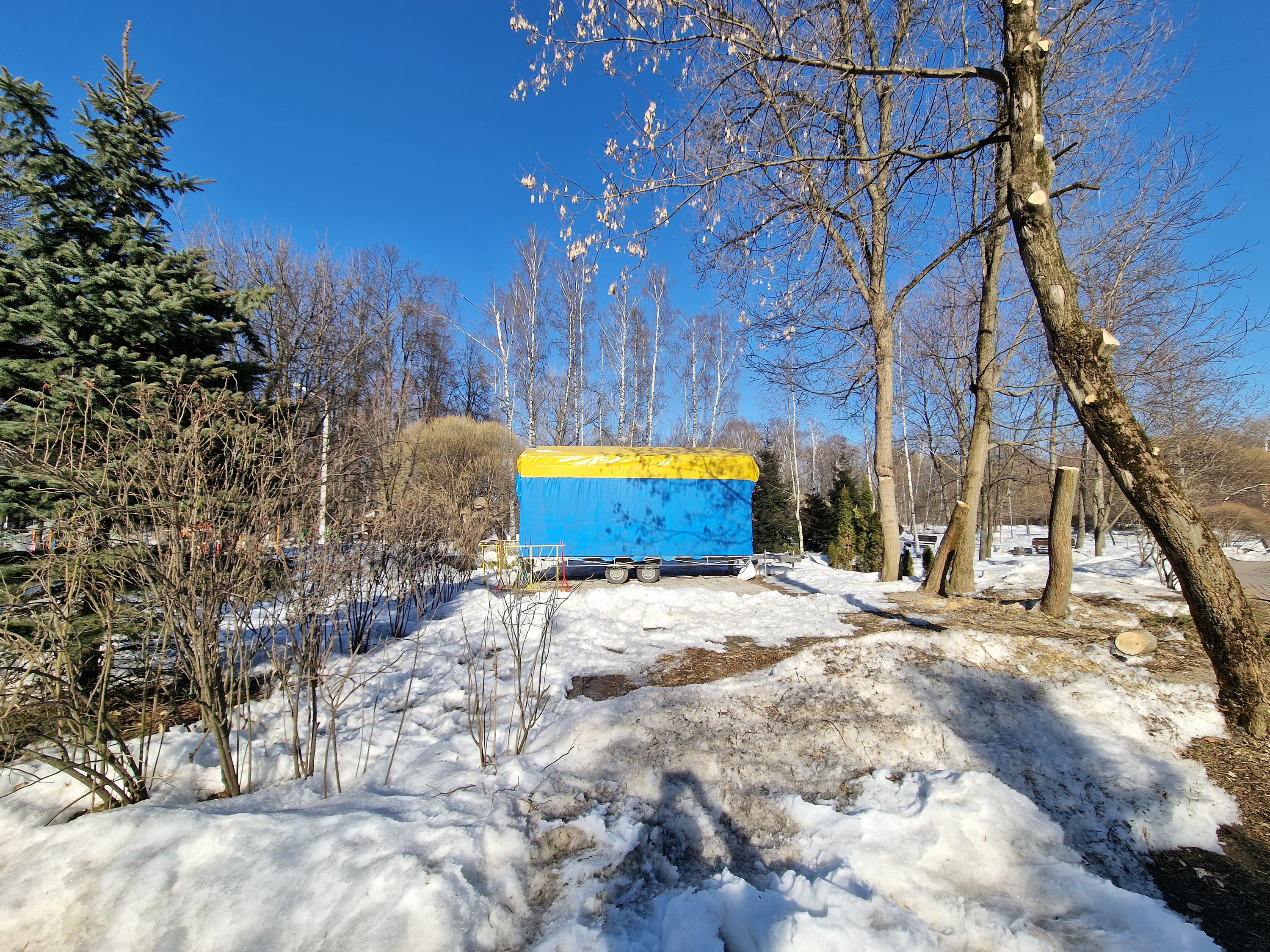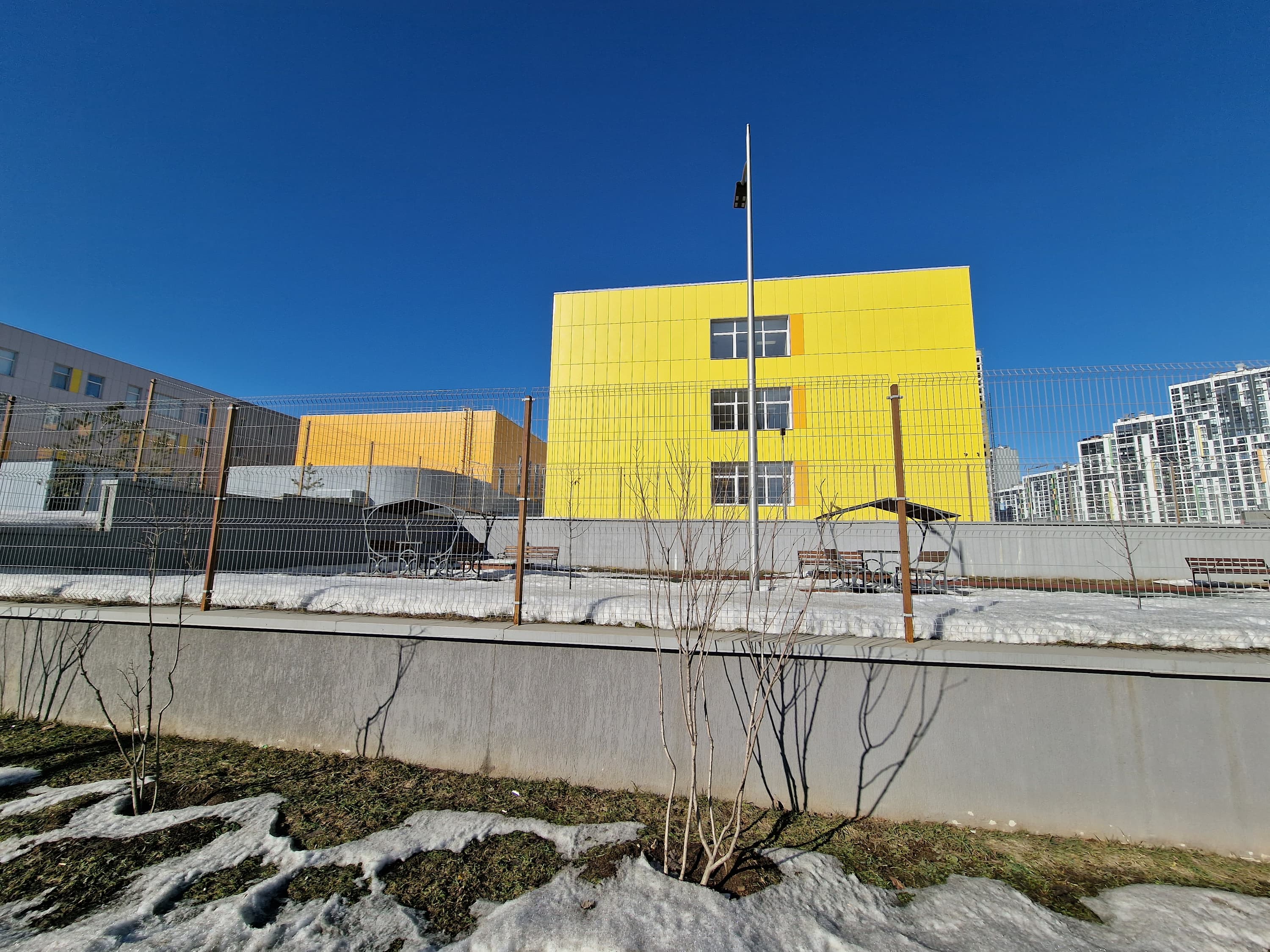 Широкоугольный модуль выдает менее контрастные снимки. Динамический диапазон его матрицы не позволяет так же качественно проэкспонировать света и тени, поэтому картинка выглядит местами пересвеченной и в целом плоской. К краям кадра появляются большие смазы и пятна нерезкости. Но в сравнении с большинством аналогов это вполне достойный уровень для широкоугольной мобильной оптики.