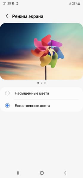 Фотография выше получена после выбора профиля Естественные цвета в настройках экрана, всего их два: