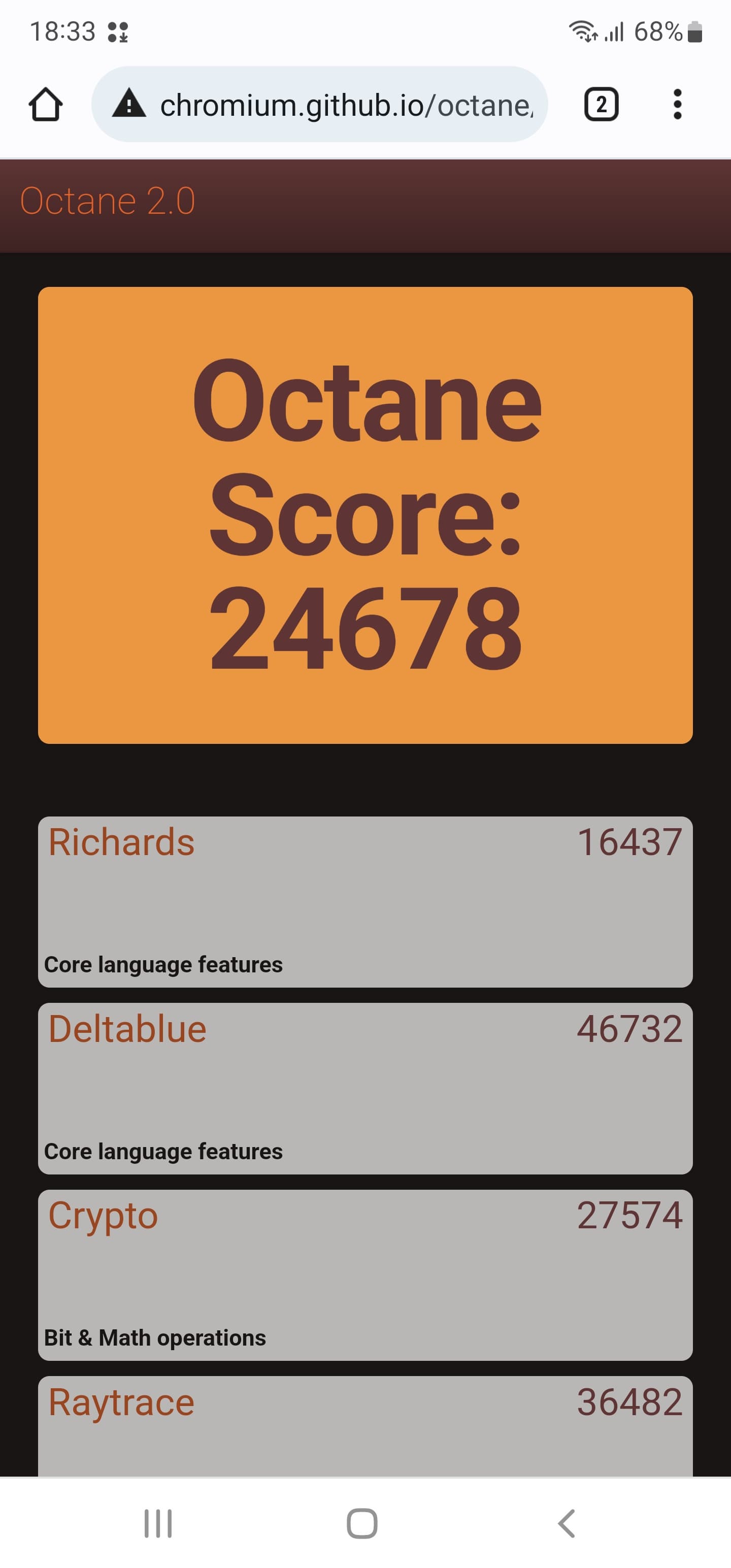 | Google Octane 2 (больше — лучше) | 24678 | 31919 | 15320 | 7257 | 48983 |