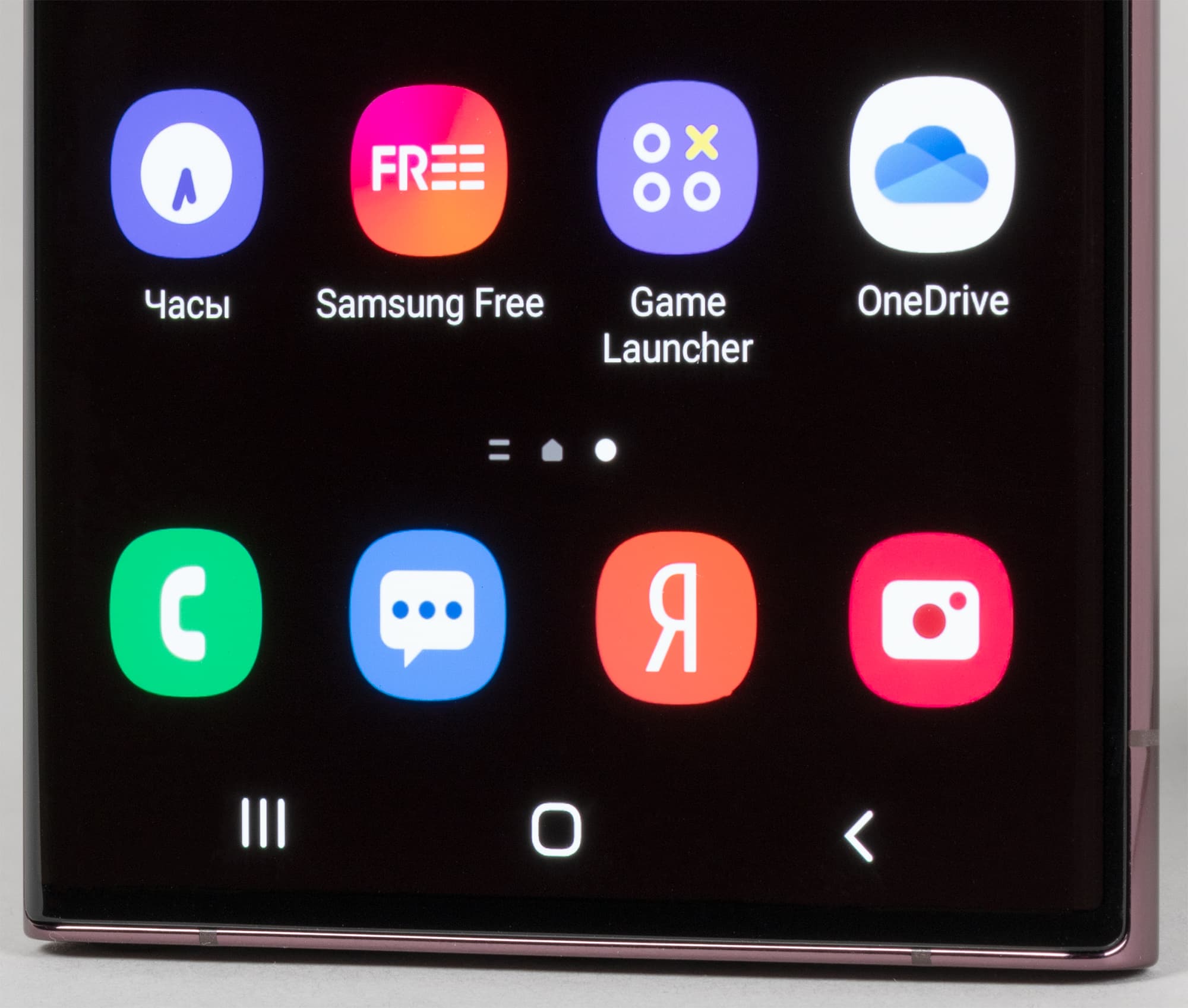 Цветопередача хорошая, цвета в меру насыщенные, цветовой баланс у экранов немного различается. Напомним, что фотография не может служить надежным источником сведений о качестве цветопередачи и приводится только для условной наглядной иллюстрации. В частности, выраженный красноватый оттенок белого и серого полей, присутствующий на фотографиях экрана Samsung Galaxy S22 Ultra, при перпендикулярном взгляде визуально отсутствует, что подтверждается аппаратными тестами с помощью спектрофотометра. Причина в том, что спектральная чувствительность матрицы фотоаппарата неточно совпадает с этой характеристикой человеческого зрения. Заметим, что в данном случае картинка занимает в высоту (при ландшафтной ориентации экрана) всю доступную для вывода изображения область и заходит на загнутые края экрана, что приводит к легкому затемнению и искажению цвета. Также на свету эти области почти всегда бликуют, что еще больше мешает при просмотре изображений, выведенных на весь экран. И даже картинка фильмов с соотношением сторон 16:9 заходит на загибы, что мешает при просмотре кино.