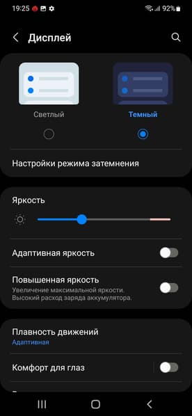 В настройках экрана можно включить адаптивный режим с повышенной до 120 Гц частотой обновления. В этом режиме нам как минимум обещают увеличение плавности прокрутки.