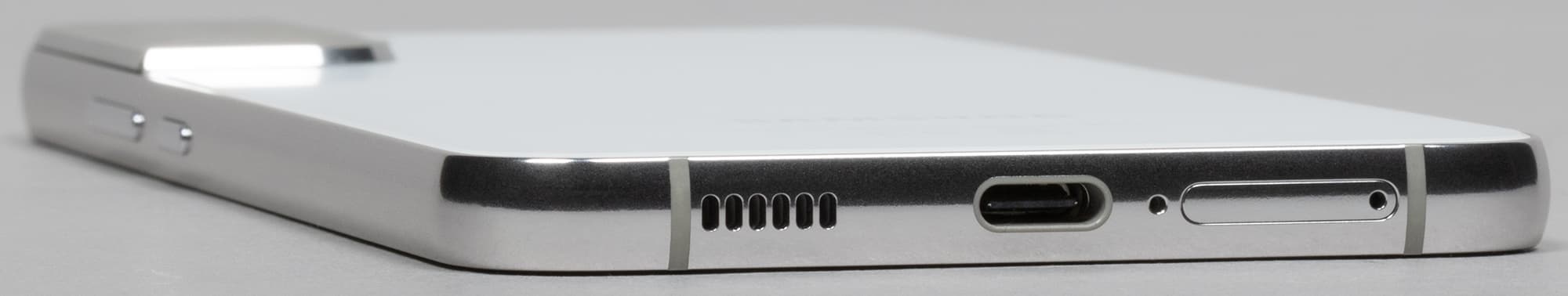 Экран у Samsung Galaxy S22+ заметно темнее (яркость по фотографиям 100 против 105 у Nexus 7) и не имеет выраженного оттенка. Двоение отраженных объектов в экране Samsung Galaxy S22+ очень слабое, это свидетельствует о том, что между слоями экрана нет воздушного промежутка. За счет меньшего числа границ (типа стекло/воздух) с сильно различающимися коэффициентами преломления экраны без воздушного промежутка лучше смотрятся в условиях интенсивной внешней засветки, но вот их ремонт в случае потрескавшегося внешнего стекла обходится гораздо дороже, так как менять приходится экран целиком. На внешней поверхности экрана Samsung Galaxy S22+ есть специальное олеофобное (жироотталкивающее) покрытие (очень эффективное, гораздо лучше, чем у Nexus 7), поэтому следы от пальцев удаляются существенно легче, а появляются с меньшей скоростью, чем в случае обычного стекла.
