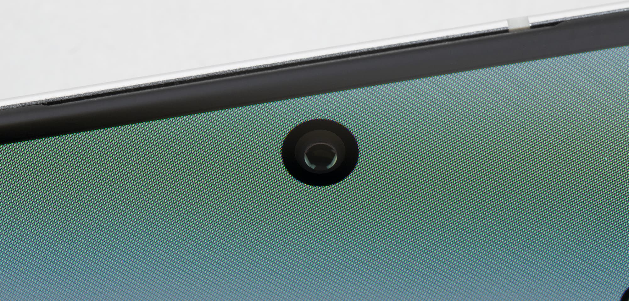 Фронтальная камера установлена за совсем небольшим круглым вырезом в матрице экрана. Светодиодного индикатора событий нет.