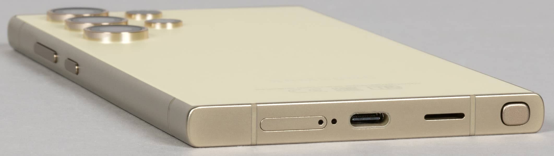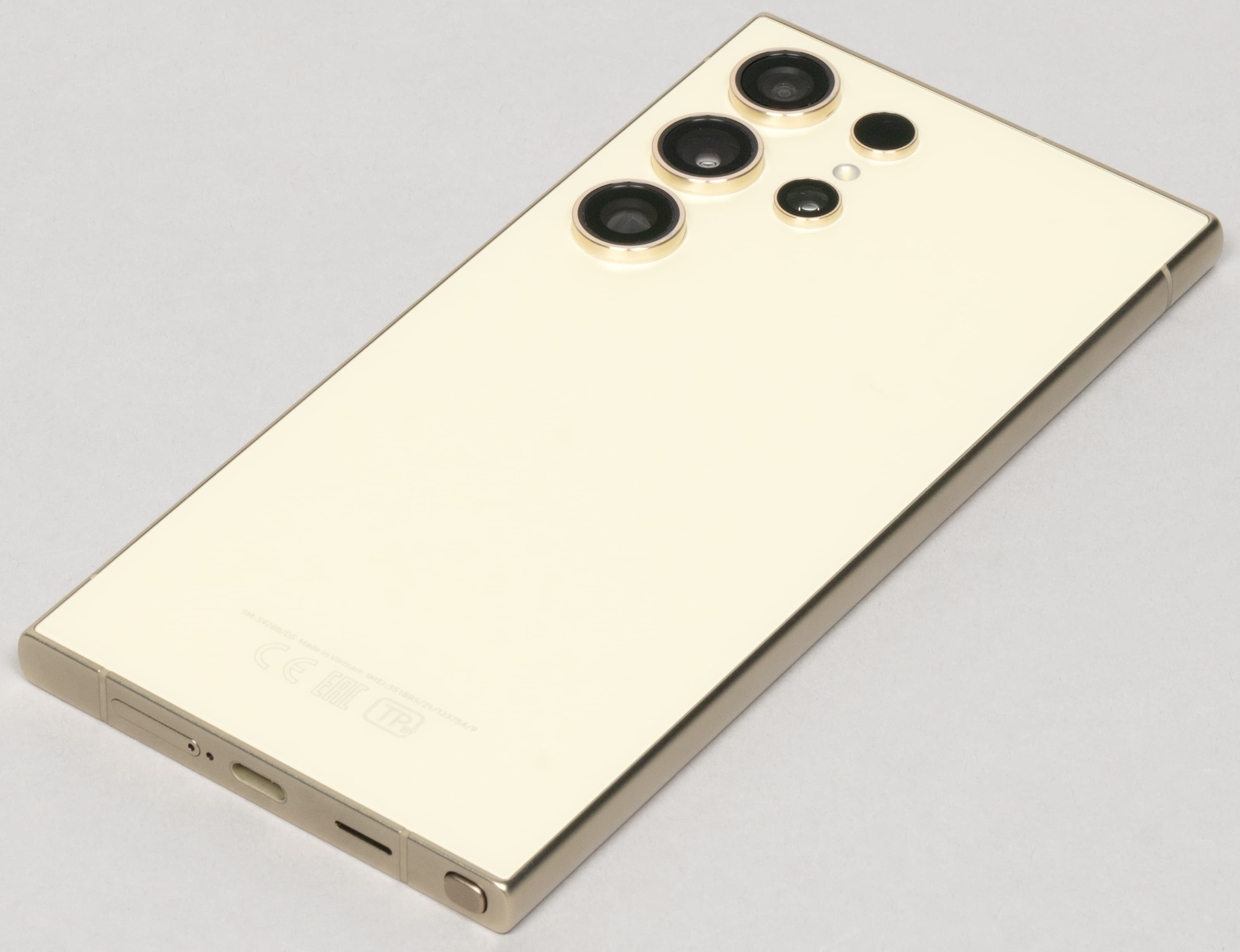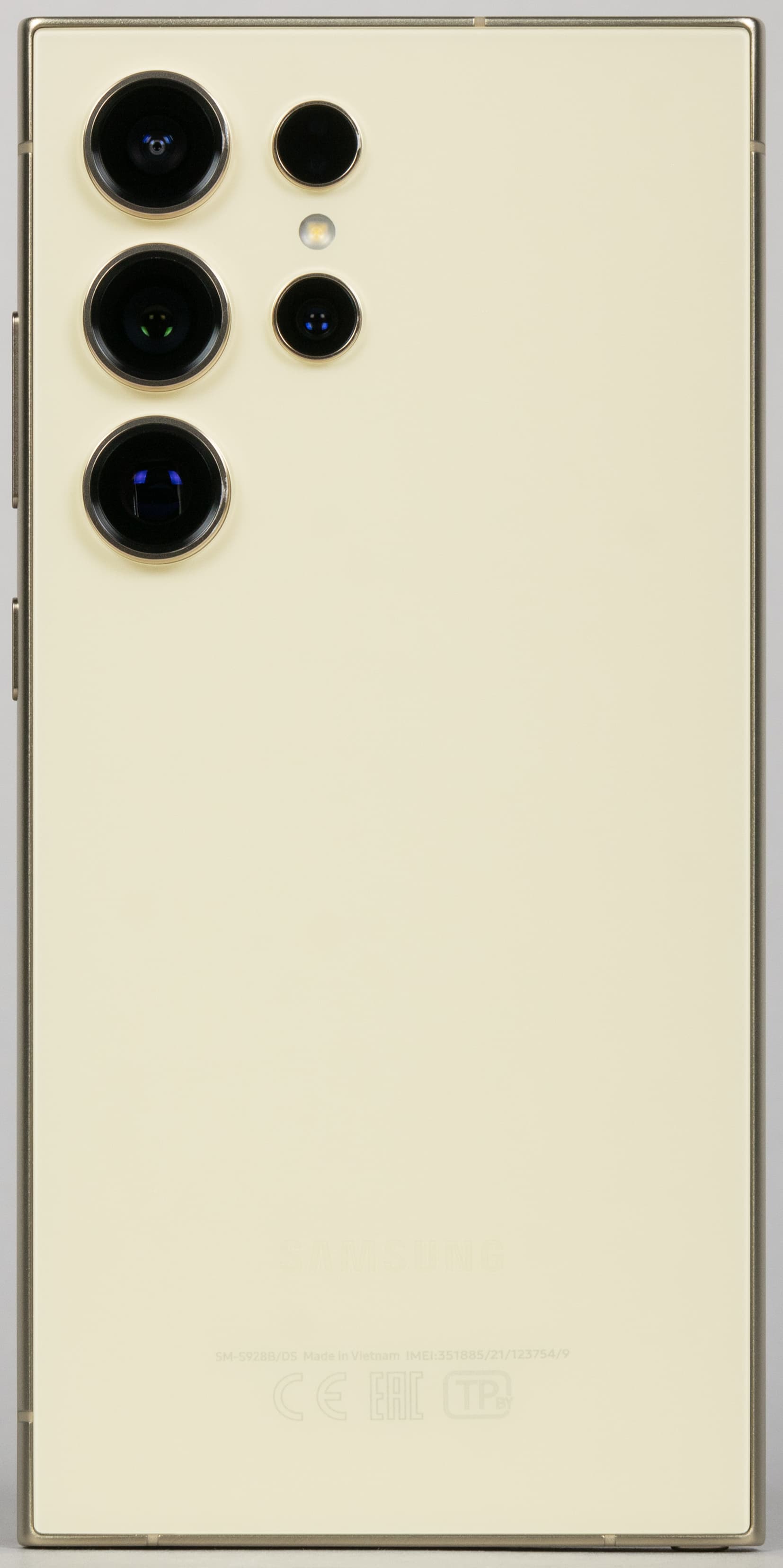 Samsung Galaxy S24 Ultra получил защиту от пыли и влаги по стандарту IP68, что означает возможность полного погружения в пресную воду на глубину до 1,5 метра до получаса. Смартфон выпускается в нескольких цветовых решениях, и все они получили приставку «Titanium», чтобы подчеркнуть наличие «титановой рамки», хотя к собственно цвету титан, конечно же, никакого отношения не имеет. Например, цвет нашего тестового образца зовется «Titanium Yellow».