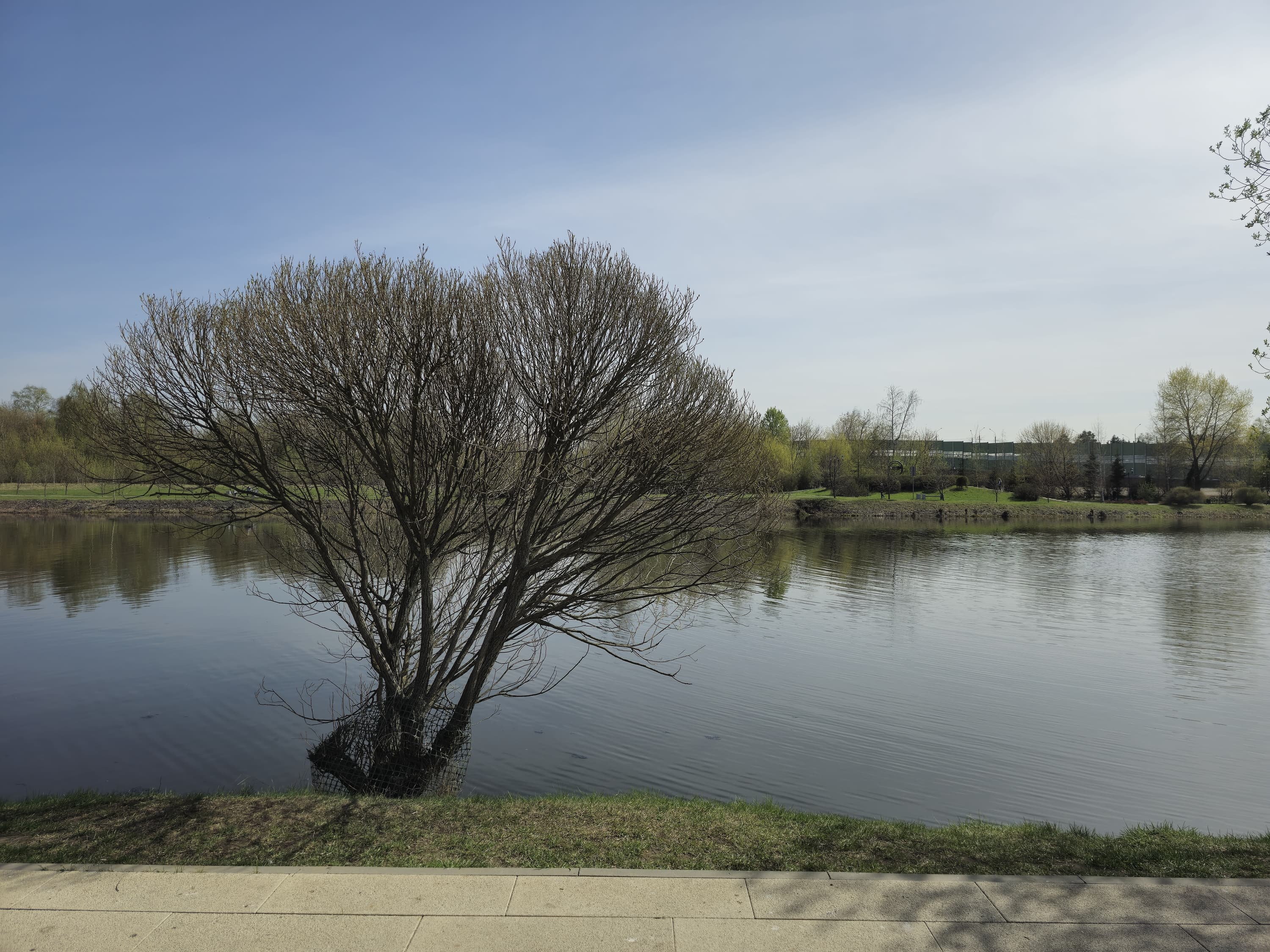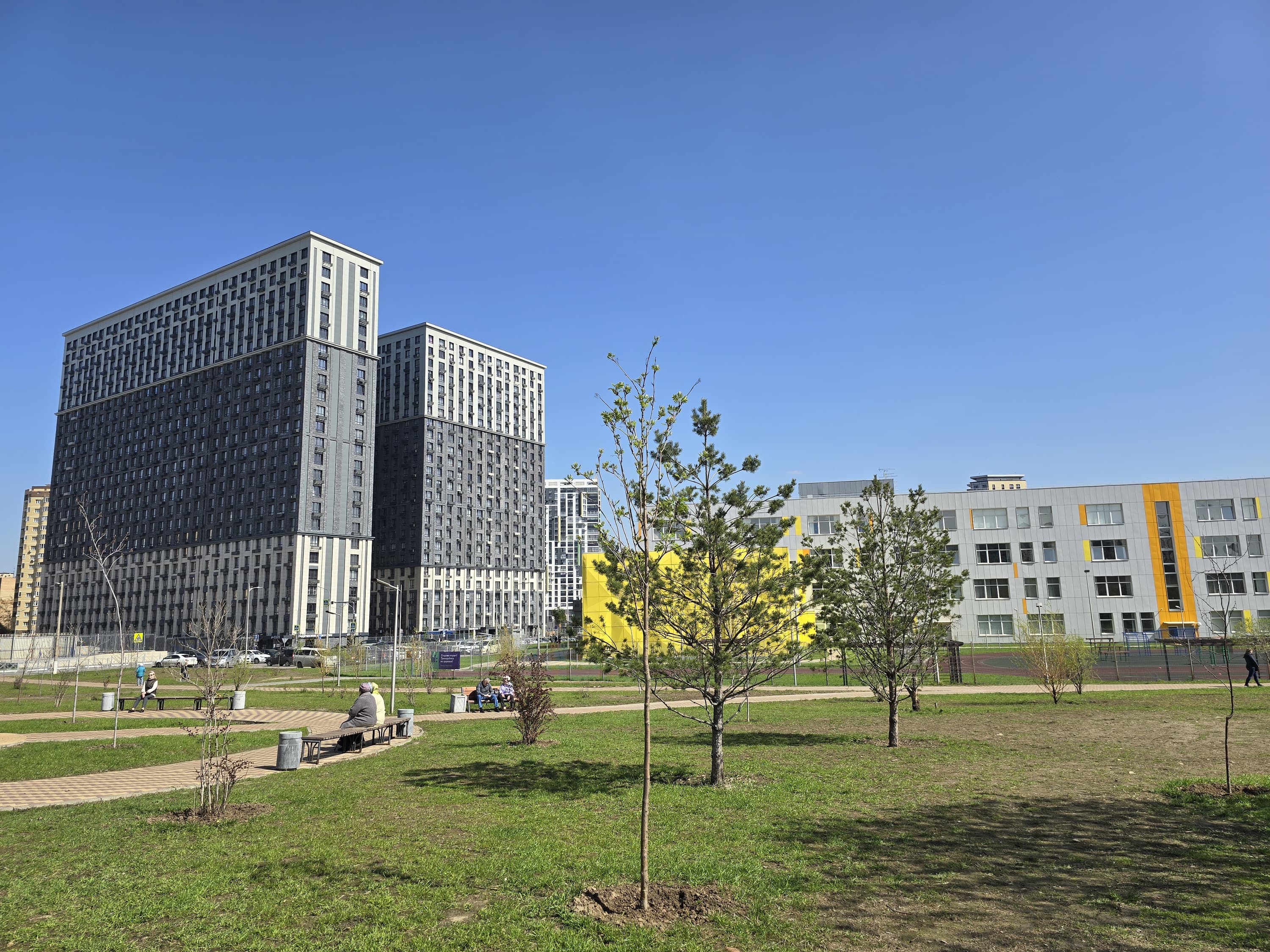 Если же говорить о самом ходовом разрешении, то тут, как всегда, вступает в дело очень специфическая обработка фото у Samsung. Такого точно нет больше ни у кого. Шарпинг просто адский, и если вы соберетесь снимать природу, пока на деревьях еще нет листьев, то готовьтесь видеть чрезвычайно жирные ветки и кашу из тонких веточек. Конечно, этот прием повышает визуальную резкость, но он также делает изображение неестественным. Тот факт, что камера обеспечивает вполне приличное разрешение даже на снимках 200 Мп, позволяет, казалось бы, надеяться, что при объединении пикселей аж 16:1 с мелкими деталями всё будет идеально, не останется ни следа от шумов. Шумов действительно не остается, но вместе с тем все однотонные поверхности заливаются одним цветом, что создает совсем неестественную картинку при съемке, например, типичных многоэтажек с отчетливым цветным рисунком на фасадах. Разумеется, есть и удачные для такой обработки сценарии, и они даже, возможно, более жизненные, но такой агрессивной обработки от фотографий флагманского смартфона точно не ждешь.