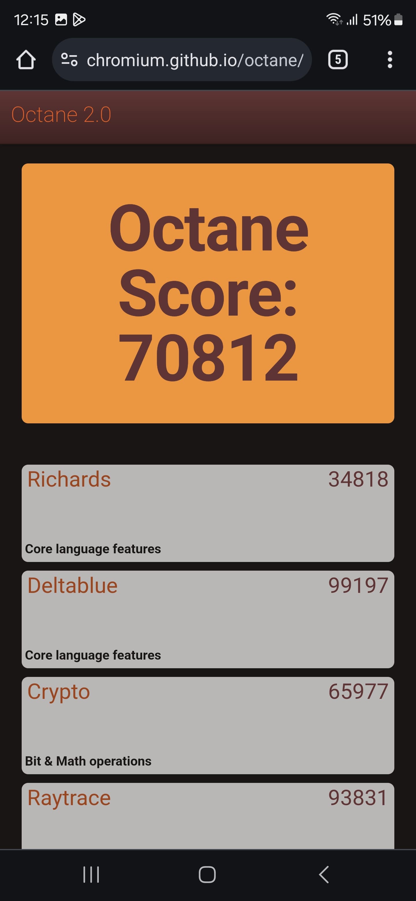 | Google Octane 2 (больше — лучше) | 70812 | 21955 | 30529 | 52617 | 5180 |