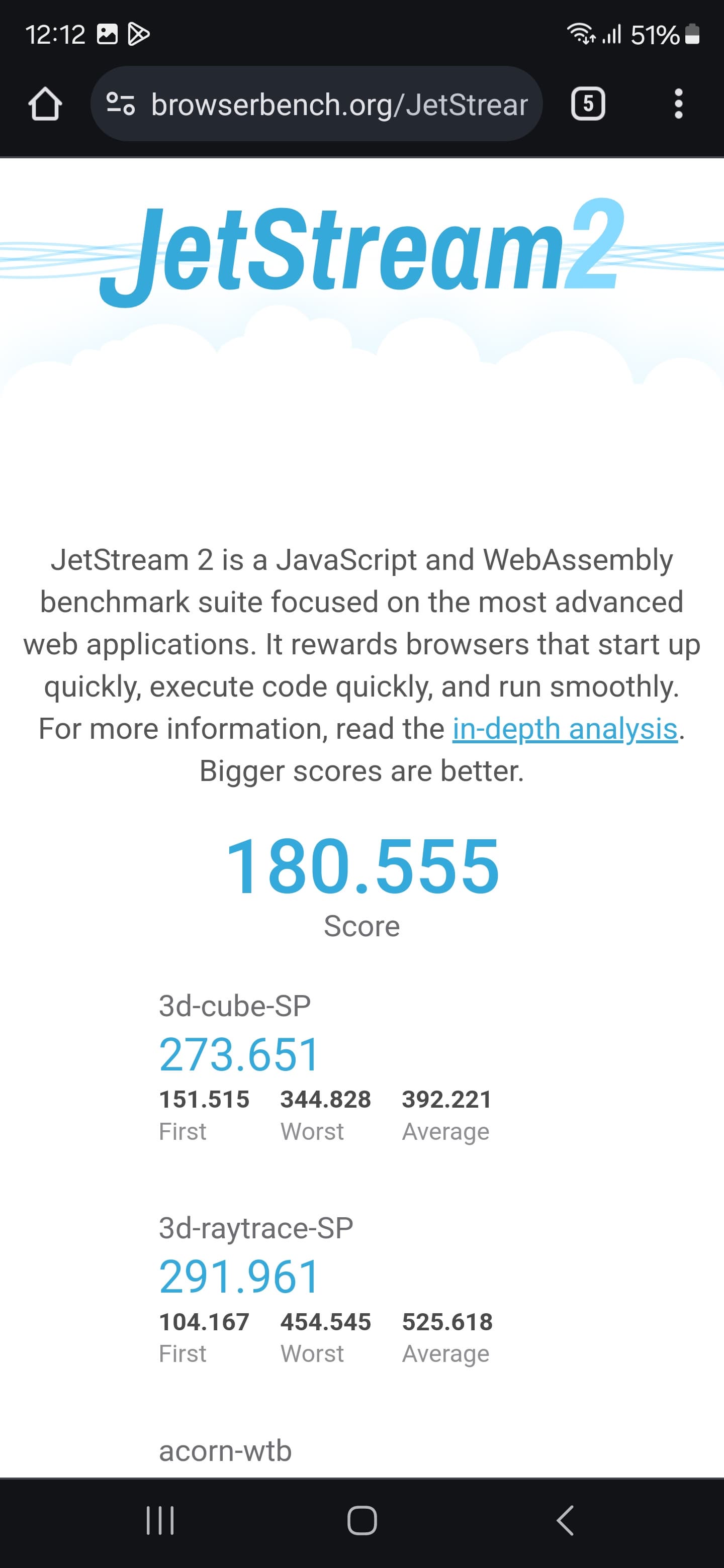 | JetStream (больше — лучше) | 180 | 105 | 85 | 102 | 20 |