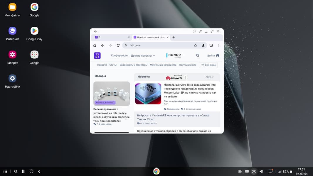 При подключении к нашему монитору вывод видео осуществляется в режиме 1080p при кадровой частоте 60 Гц. Режимов работы два: дублирование экрана смартфона (Screen Mirroring) и работа в режиме Samsung DeX — вывод альтернативного рабочего стола. Режим работы выбирает пользователь. В режиме Samsung DeX на экран монитора выводится изображение альтернативного рабочего стола, а экран смартфона может использоваться в качестве сенсорной панели координатного ввода или работать как обычно.