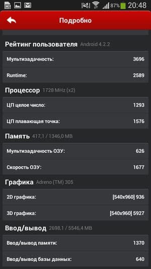 | AnTuTu 4.х (больше — лучше) | 20330 | 17283 | 17164 | 20258 | 12340 |
