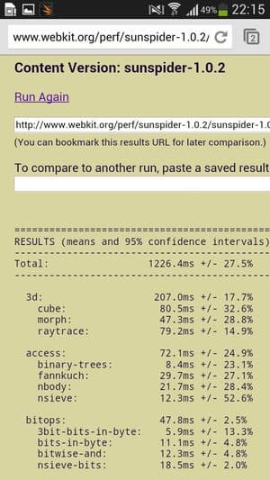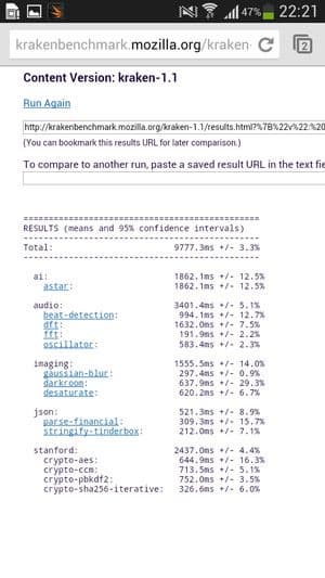 Что касается бенчмарков для оценки скорости движка javascript, то стоит всегда делать скидку на то, что в них результаты существенно зависят от браузера, в котором запускаются, так что сравнение может быть истинно корректным только на одинаковых ОС и браузерах, а такая возможность имеется при тестировании не всегда. В случае с ОС Android мы всегда стараемся использовать Google Chrome.