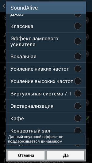 Все звуковые эффекты при проигрывании мелодий штатным проигрывателем объединены технологией под названием SoundAlive — правда, часть из них, как, например, расширение виртуальной стереобазы, доступна лишь с подключенными наушниками. Это же касается и функции оптимизации звука.