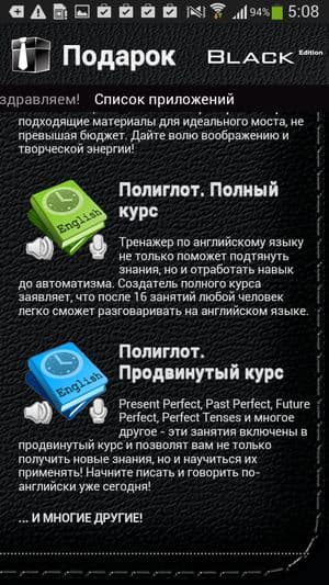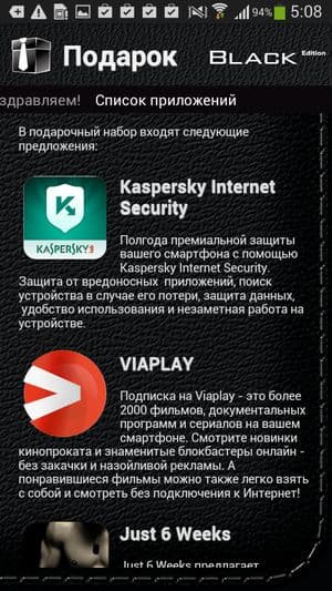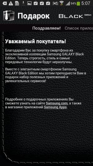 Samsung Galaxy S4 mini Black Edition работает на программной платформе Google Android версии 4.2.2. Поверх стандартного интерфейса ОС компания установила собственный пользовательский интерфейс, имеющий название TouchWiz 5.0 (Nature UX). Все здесь обустроено точно так же, как у оригинальной модели «мини» за исключением нескольких добавочных предустановленных программ, которых не было в оригинале. Поскольку модель принадлежит к отдельной «лимитированной» серии, то необходимо было чем-нибудь выделиться, и разработчики нашли такой способ. Они установили в смартфон программу под названием «Подарок», открыв которую, пользователь получает доступ к возможности бесплатного скачивания и установки нескольких дополнительных программ. Правда, в итоге, список обещанного сильно не совпал со списком реально доступных приложений. Их оказалось в доступе всего лишь три: полугодичная лицензия антивируса Касперского, приложение «умный будильник», а также некая программа для управления собственными финансами — не густо, прямо скажем. Остальные обещанные приложения из списка в самом магазине не появились, возможно их выложат позднее.