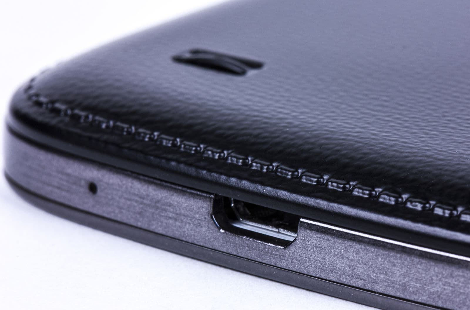 Универсальный разъем Micro-USB традиционно расположили в нижнем торце — к сожалению, здесь не поддерживается режим подключения внешних устройств, так что и флэш-накопитель с помощью OTG-переходника подключить не получится.