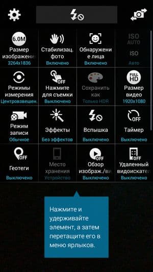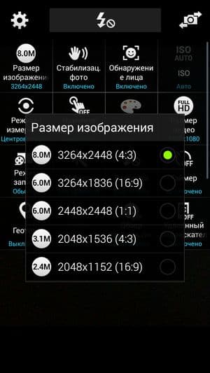 Основная, тыловая камера имеет CMOS-матрицу 8 Мп. Камера оснащена автофокусом и LED-вспышкой, достаточно проста по своим возможностям, все на уровне прошлых лет. Здесь нет функции интеллектуальной оптической стабилизации (Smart OIS) или режима выборочной фокусировки для размытия фона, нет замедленной или убыстренной видеосъемки, нет и возможности снимать видео в 4К или со скоростью 60 fps. В настройках, помимо основного режима, стандартно имеются режимы панорамной съемки, в движении, ретушь и HDR (здесь это называется «насыщенные тона»), но можно скачать и использовать дополнительные режимы с помощью фирменного сервиса. Само меню настроек наглядно и интуитивно понятно, разбито на равнозначные ячейки, каждая из которых всегда находится на виду и интерактивна. Ко всему прочему, каждую из ячеек можно потянуть вверх и сделать из нее ярлык для быстрого доступа в отдельной верхней строчке. Прорисовка иконок отчетливая, все прекрасно видно даже на самом ярком солнечном свету, и вообще реализация меню управления камерой у последних аппаратов Samsung одна из лучших на рынке.