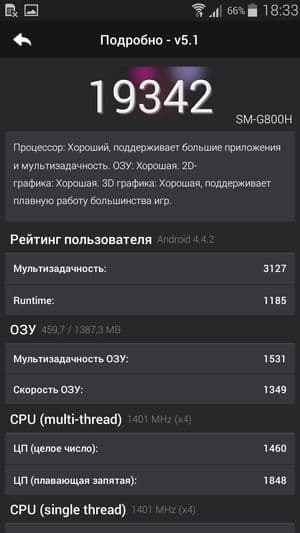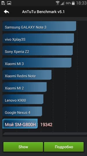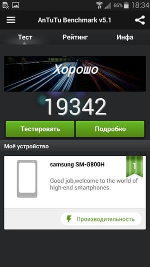 В целом, по результатам тестирования, смартфон Samsung Galaxy S5 mini можно смело отнести к разряду аппаратов со средней производительностью — примерно 20К в тесте AnTuTu, в то время как максимальный уровень топовых платформ в AnTuTu сейчас достигает 40К и выше. На данный момент аппаратной мощности данного смартфона должно хватать для выполнения большинства задач, которые могут поставить не самые требовательные игры или приложения из Google Play Store.