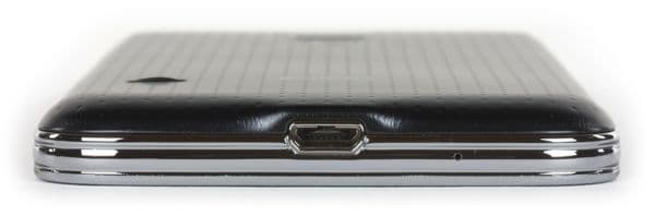 Что касается разъемов, то их здесь традиционно два: аудиовыход 3,5 мм расположен на верхнем торце, рядом с глазком ИК-передатчика, а в нижнем торце безо всяких заглушек размещен разъем Micro-USB, который даже не поддерживает подключение в режимах USB OTG и MHL. Это еще один пример старания разработчиков искусственно ухудшить функциональность смартфона, дабы он не пересекался по возможностям с тем же Galaxy Alpha, например (у которого USB OTG поддерживается).