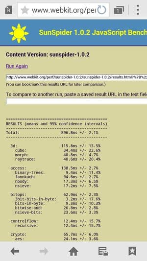 Что касается бенчмарков для оценки скорости движка javascript, то стоит всегда делать скидку на то, что в них результаты существенно зависят от браузера, в котором запускаются, так что сравнение может быть истинно корректным только на одинаковых ОС и браузерах, а такая возможность имеется при тестировании не всегда. В случае с ОС Android мы всегда стараемся использовать Google Chrome.