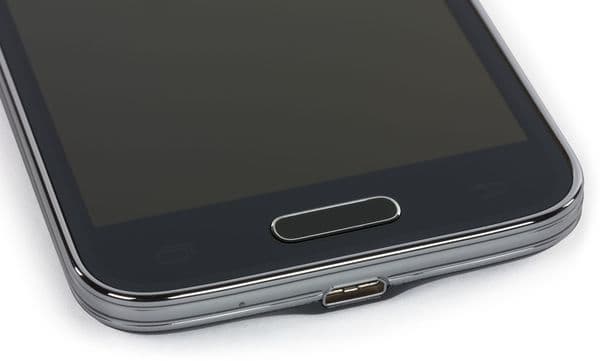Итак, внешне смартфон Samsung Galaxy S5 mini представляет собой точную копию флагманского S5 за исключением размеров. За счет уменьшенных габаритов герой обзора гораздо более комфортно помещается в руке и удерживается достаточно надежно за счет «клеенчатой» поверхности задней крышки. Аппарат не тяжелый, его легко будет переносить в карманах одежды, в том числе рубашки или брюк. В противовес полноразмерным современным планшетофонам с размерами экрана от 5 дюймов и более, Galaxy S5 mini действительно можно с некоторой натяжкой назвать миниатюрным мобильным устройством.