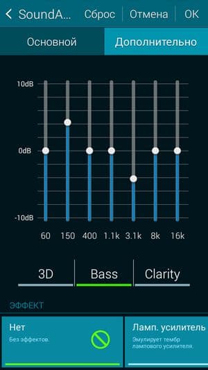 Для проигрывания мелодий стандартно используется фирменный проигрыватель с максимальным количеством настроек. Все звуковые эффекты при этом объединены технологией под названием SoundAlive — правда, часть из них доступна лишь с подключенными наушниками. Это же касается и функции оптимизации звука. Разнообразных виртуальных эффектов представлено очень много, они здесь объединены в сетку из квадратиков, экспериментировать можно очень долго.
