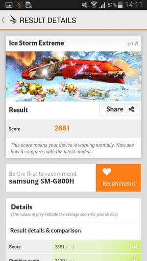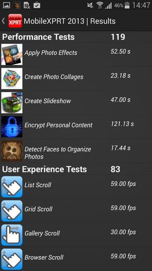 Интересно сравнить производительность S5 mini с предшествующей мини-версией Samsung, S4 mini, но из-за того, что создатели AnTuTu постоянно обновляют свой бенчмарк, cделать это впрямую у нас возможности нет, поскольку прошлая модель тестировалась в другой версии теста. И тем не менее, остальные бенчмарки не выявили превосходства нового мини-флагмана над предыдущим, что совершенно неудивительно, ведь построены обе модели на схожих аппаратных платформах одного уровня, так что в этом плане никакого прогресса уж точно не наблюдается.