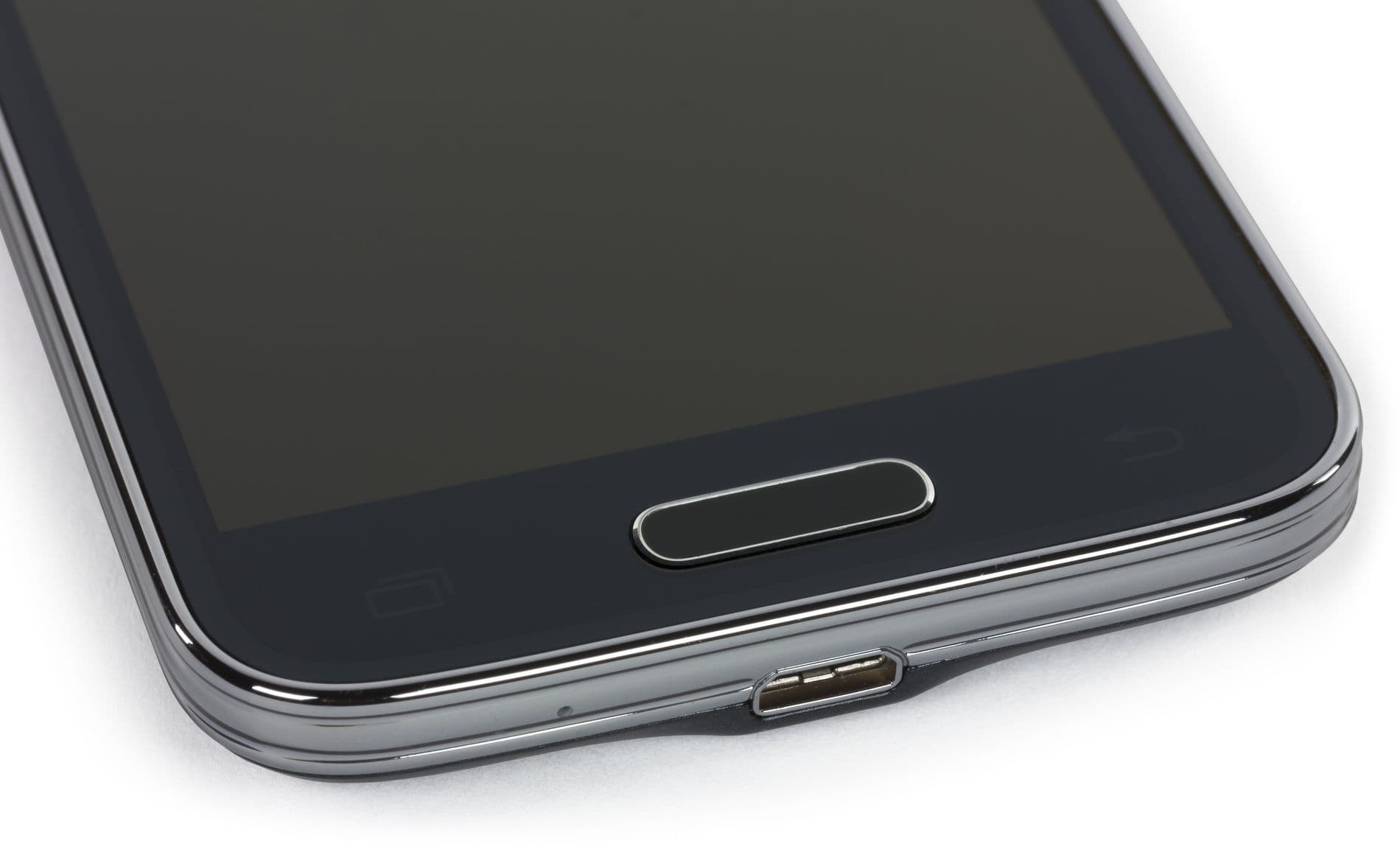 Начать следует, пожалуй, с того факта, что очередная миниатюрная модель, в отличие от таких новинок, как Galaxy Alpha и Galaxy Note 4, не получила нового непривычного пока еще для Samsung дизайна с металлической остроугольной рамкой. Нет, смартофн Galaxy S5 mini вышел похожим как две капли воды на своего «предка» — Samsung Galaxy S5, что вполне логично. Новинка заимствовала у своего прародителя и ту же самую «обивку» под перфорированную кожу на задней крышке, и тот же дутый толстый блестящий ободок, выполненный не из настоящего металла, а из пластика, который визуально увеличивает габариты устройства и в целом не слишком-то украшает и без того неброский дизайн. Не получил смартфон и новой аппаратной платформы: при том, что Samsung уже научилась делать для себя SoC по новому техпроцессу 20 нм, здесь установлена та же платформа Qualcomm Snapdragon 400, на которой работала и предыдущая мини-версия Galaxy S4 mini. Зато новая «мини» получила сканер отпечатков пальцев, инфракрасный передатчик и датчик сердечного ритма — в точности как у настоящего флагмана.