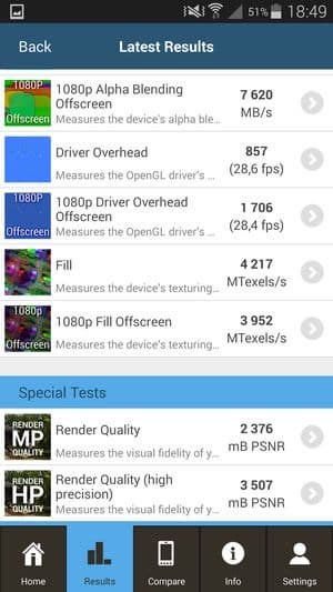 Отставание в работе видеоподсистемы Mali-450MP4 все же заметно: этот видеоускоритель выдает примерно 47 fps в тех тестовых режимах, в которых Adreno 330 выдает 60 fps.