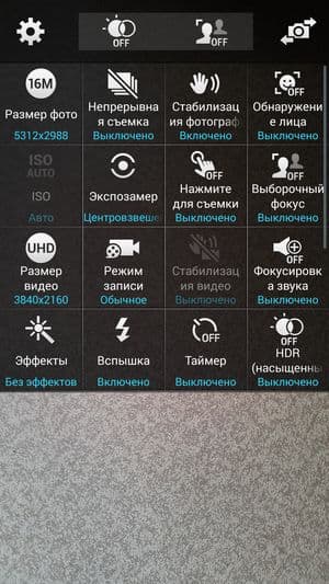 Из-за небольшого различия в цветовом тоне отражения и рамок трудно визуально оценивать величину уменьшения яркости отражения, впрочем, статистика из графического редактора показывает, что экран у S5 действительно чуть-чуть темнее, чем у Nexus 7. Двоение отраженных объектов очень слабое, это свидетельствует о том, что между слоями экрана нет воздушного промежутка. На внешней поверхности экрана есть специальное олеофобное (жироотталкивающее) покрытие, (очень эффективное, может немного лучше, чем у Google Nexus 7), поэтому следы от пальцев удаляются существенно легче, а появляются с меньшей скоростью, чем в случае обычного стекла.