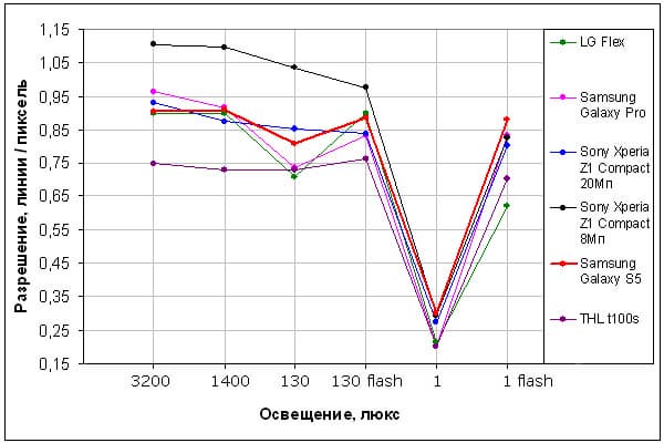 По результатам съемки стенда можно заключить, что реальное разрешение снимков, возможно, не самое высокое, но мы уже оговаривались, что в данном случае это далеко не главная характеристика, особенно в окрестности таких значений, поскольку разрешение может быть высоким, но при этом не совсем естественным. Тем не менее, разрешение камеры весьма приличное. Также стоит отметить хорошую работу вспышки, да и сенсора, который достаточно стабильно отрабатывает при разном освещении.