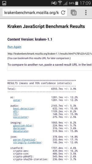 Что касается бенчмарков для оценки скорости движка javascript, то стоит всегда делать скидку на то, что в них результаты существенно зависят от браузера, в котором запускаются, так что сравнение может быть истинно корректным только в одинаковых ОС и браузерах, а такая возможность имеется при тестировании не всегда. В случае с ОС Android мы всегда стараемся использовать Google Chrome.