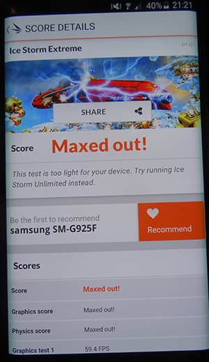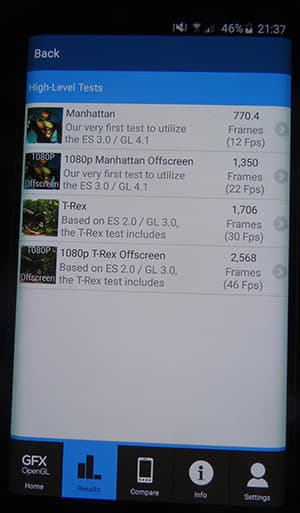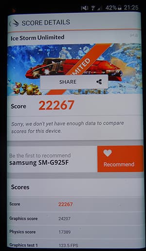 Новый рубеж покоряется в 3DMark Unlimited — 22267 баллов. Это рекорд! У планшетов с новой Tegra встречаются результаты и повыше, но у них и разрешение экрана чуть ниже. А на смартфонном рынке у Galaxy S6 Edge, конечно, конкурентов пока не наблюдается.
