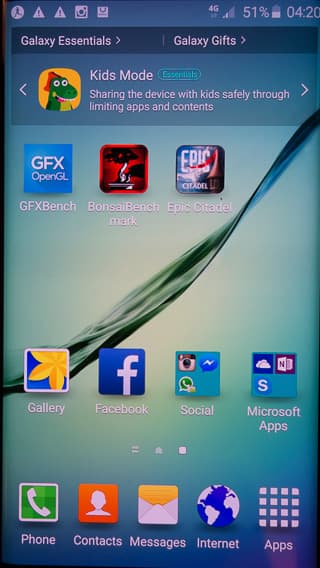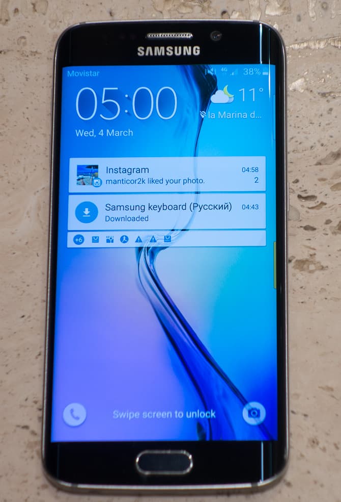 За крайне ограниченное время знакомства у нас не было возможности протестировать экран, так что просто изложу здесь свои личные впечатления. Ну, начнем с того, что экран удивительно четкий, и это как раз неудивительно. Плотность пикселей здесь составляет 577 ppi, в то время как у Galaxy S5 было 432 ppi, у iPhone 6 Plus — 401 ppi, у LG G3 — 543 ppi (разрешение экрана у LG G3 такое же, а вот диагональ больше — 5,5 дюйма). Экран выдает насыщенные цвета, очень яркий и контрастный, но чего еще можно было ожидать от Super AMOLED? Взвинченная цветовая насыщенность особенно заметна при рассматривании фотографий, сделанных с помощью Samsung Galaxy S6 Edge. При этом минимальная яркость вполне комфортна для чтения в темноте. Присутствует возможность регулировки цветовой температуры, а также энергосберегающий режим.