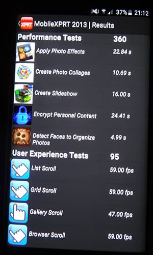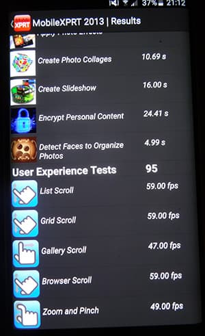 В заслуживающем наибольшего доверия GFXBench смартфон Samsung уступает iPhone в самой требовательной сцене, да и в T-Rex HD тоже. Но здесь, опять же, нужно принимать во внимание разницу в разрешении, с ее учетом разрыв совсем невелик. Как бы то ни было, перед нами, бесспорно, самый мощный смартфон с OS Android на сегодняшний день.