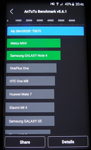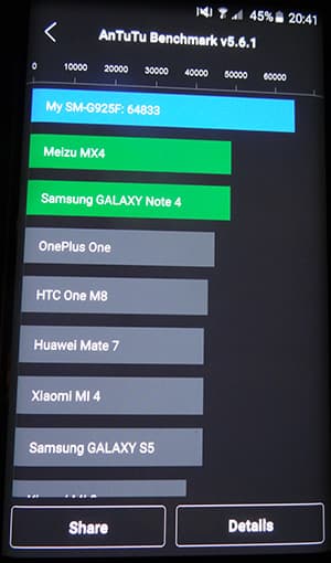 В комплексном Antutu в 32-битном режиме применяемая в новом флагмане Samsung SoC Exynos 7420 оказывается на голову выше ближайших (по мнению бенчмарка) конкурентов. Да и с другими новинками MWC 2015, судя по имеющейся информации, Galaxy S6 Edge расправляется играючи: