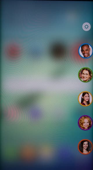 В целом, обновленный пользовательский интерфейс напоминает скорее «голый» Android, чем ранние версии TouchWiz. Большинство критикуемых вещей сгинуло или было запрятано куда подальше. Было добавлено несколько специальных жестов управления, «заточенных» под скошенные грани. Например, если провести пальцем из-за правой грани по верху экрана, то появится список самых часто вызываемых контактов (скриншот ниже слева), а проведя пальцем из-за правой грани посередине экрана, мы вызовем окошко с пропущенными вызовами (скриншот ниже справа). В целом новые жесты не выглядят жизненно необходимыми и очень удобными — скорее, это демонстрация дополнительных возможностей, появляющихся из-за «выпуклого» экрана. На мой взгляд, достаточно и того, что экран очень красивый.