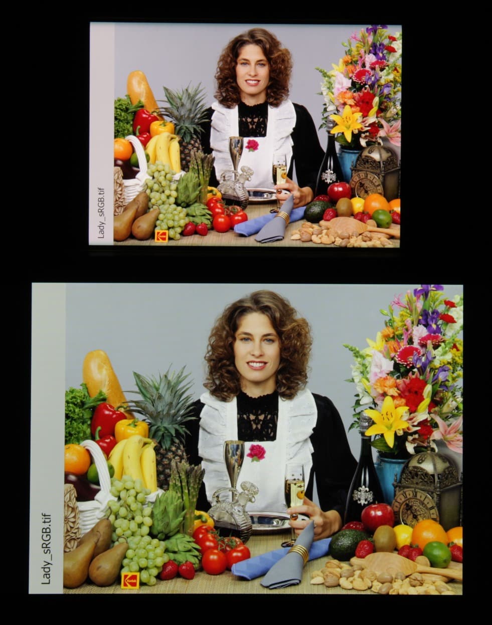 Профиль Адаптивный дисплей отличается какой-то автоматической подстройкой цветопередачи под тип выводимого изображения и окружающие условия, что получается при выборе двух оставшихся профилей показано ниже.